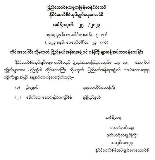 ဝန်ကြီးဌာန ကြေညာချက်များ