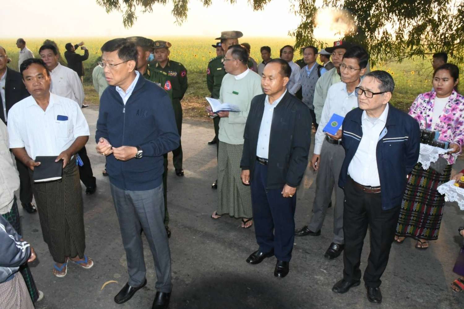 စစ်ကိုင်းတိုင်းဒေသကြီး ကလေးမြို့သို့ရောက်ရှိနေသော နိုင်ငံတော်စီမံအုပ်ချုပ်ရေး ကောင်စီအဖွဲ့ဝင်၊ ဒုတိယဝန်ကြီးချုပ်နှင့် ကာကွယ်ရေးဝန်ကြီးဌာန ပြည်ထောင်စုဝန်ကြီး ဗိုလ်ချုပ်ကြီး မြထွန်းဦး၊ နိုင်ငံတော်စီမံအုပ်ချုပ်ရေးကောင်စီအဖွဲ့ဝင် ဒေါက်တာ မှုထန်၊ ပြည်ထောင်စုဝန်ကြီးများ၊ စစ်ကိုင်းတိုင်းဝန်ကြီးချုပ်၊ အနောက်မြောက်တိုင်းစစ်ဌာနချုပ် တိုင်းမှူး၊ ဒုတိယဝန်ကြီးများနှင့် တာဝန်ရှိသူများသည် ၂၂-၂-၂၀၂၃ ရက် နံနက်ပိုင်းတွင် ကလေးမြို့နယ်၊ အင်တိုင်းကြီးကျေးရွာအုပ်စု၊ ဖောင်ကူးကျေးရွာရှိ တောင်သူများ စိုက်ပျိုးထားရှိသော နေကြာစိုက်ခင်းများသို့ သွားရောက်ကြည့်ရှုသည်။ ထို့နောက် တောင်သူများ၏ တင်ပြချက်များအပေါ် တာဝန်ရှိသူများနှင့် ညှိနှိုင်းပေါင်းစပ်ပေးကာ တောင်သူများထံ ပိုးသတ်ဆေးဘူးများနှင့် နေကြာမျိုးစေ့များပေးအပ်သည်။ ယင်းနောက် ခရိုင် စိုက်ပျိုးရေးဦးစီးဌာနရှိ တာဝန်ခံတစ်ဦးက ပိုးသတ်ဆေး စနစ်တကျသုံးစွဲပုံကို တောင်သူများထံ ရှင်းပြသည်။