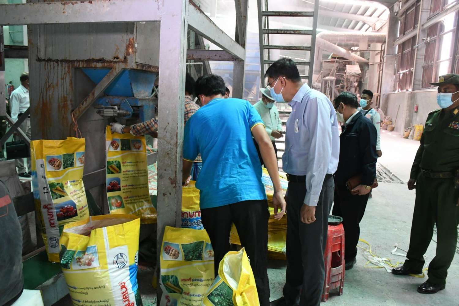 ဆက်လက်၍ နေ့လယ်ပိုင်းတွင် နိုင်ငံတော်စီမံအုပ်ချုပ်ရေးကောင်စီ အဖွဲ့ဝင်၊ ဒုတိယဝန်ကြီးချုပ်နှင့် ကာကွယ်ရေးဝန်ကြီးဌာန ပြည်ထောင်စုဝန်ကြီး ဗိုလ်ချုပ်ကြီး မြထွန်းဦးနှင့်အဖွဲ့သည် စစ်ကိုင်းမြို့သို့ရောက်ရှိကြပြီး စစ်ကိုင်းမြို့၊ ပတ္တမြားစက်မှုဇုန်ရှိ သုတသုခ ဓာတ်မြေဩဇာစက်ရုံသို့ရောက်ရှိပြီး ဇာမဏီတံဆိပ် ကွန်ပေါင်းဓာတ်မြေဩဇာ ထုတ်လုပ်ပုံအဆင့်ဆင့်ကို လေ့လာကြည့်ရှုသည်။