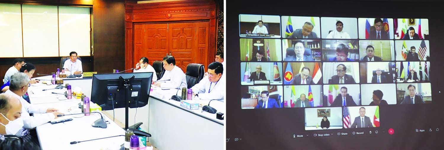 နိုင်ငံခြားရေးဝန်ကြီးဌာန ပြည်ထောင်စုဝန်ကြီး ဦးသန်းဆွေသည် အမေရိကဇုန်၊ ဥရောပဇုန်၊ အရှေ့အလယ်ပိုင်းနှင့် အာဖရိကဇုန်တို့ရှိ မြန်မာသံရုံး၊ မြန်မာအမြဲတမ်း ကိုယ်စားလှယ်အဖွဲ့ရုံးမှ သံရုံးအကြီးအကဲများ၊ သံရုံးယာယီတာဝန်ခံများကို ယနေ့မွန်းလွဲပိုင်းတွင် Video Confer-encing စနစ်ဖြင့် တွေ့ဆုံသည်။