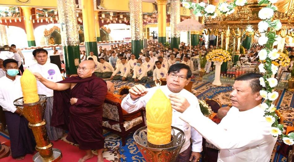 ဆက်လက်၍ မြတ်ဗုဒ္ဓ၏ သဗ္ဗညုတဉာဏ်ရောင် မြတ်တန်ဆောင်ကို လေးမြတ်ကော်ရော် ပူဇော်သောအားဖြင့် သြဝါဒါစရိယဆရာတော်၊ တိုင်းဒေသကြီးဝန်ကြီးချုပ်၊ တိုင်းမှူး၊ ဂေါပကအဖွဲ့၀င်များနှင့် ဧည့်သည်တော်များက ဆီမီးတန်ဆောင်ထွန်းညှိပူဇော်ပြီး ဗုဒ္ဓပူဇနိယတပေါင်းပွဲတော်အား ဖွင့်လှစ်ပေးကြသည်။ ယင်းနောက် တိုင်းဒေသကြီးဝန်ကြီးချုပ်၊ တိုင်းမှူးနှင့် ဂေါပကအဖွဲ့တာ၀န်ရှိသူများက သံဃာတော်များအား လှူဖွယ်ဝတ္ထုပစ္စည်းများ ဆက်ကပ်လှူဒါန်းကြသည်။ ထို့နောက် မဟာပဋ္ဌာန်းပစ္စယ နိဒ္ဒေသဒေသနာတော်များကို သြဝါဒါစရိယဆရာတော်ကြီးများ၊ ဗဟိုမဏ္ဍပ်အတွင်းရှိ တက်ရောက်လာကြသူများ၊ အာရုံခံမုခ်ဦး(၄)ခုတွင် နေရာယူထားကြသော ပရိသတ်အမျိုးလေးပါးတို့က ရွတ်ဖတ်ပူဇော်၍ ဗဟိုမဏ္ဍပ်အတွင်းရှိ ရတနာဃရစံအိမ်တော်အတွင်း အသင့်နေရာယူထားသော သံဃာတော်က မဟာပဋ္ဌာန်းဒေသနာတော်ကို အသံမစဲဆက်လက်ရွတ်ဖတ်ပူဇော်ပြီး တိုင်းဒေသကြီးဝန်ကြီးချုပ်၊ တိုင်းမှူးနှင့် တာဝန်ရှိသူများက သံဃာတော်များနှင့် သီလရှင်များအား နေ့ဆွမ်းဆက်ကပ်လှူဒါန်းကြသည်။