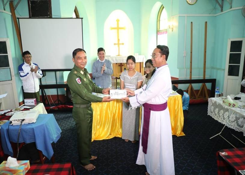 ရခိုင်ပြည်နယ်၊ စစ်တွေမြို့ရှိ မြန်မာနိုင်ငံခရစ်ယာန်အသင်းတော် (အင်္ဂလီကန်) စစ်တွေသာသနာပိုင်၏ နယ်စီးသာသနာပိုင်ကြီး ဒေါက်တာဂျိမ်း (စ်) မင်းဒိန်နှင့် ရခိုင်ပြည်နယ်အတွင်း မြို့နယ်အသီးသီးနှင့် ချင်းပြည်နယ်၊ ပလက်ဝမြို့တို့မှ အသင်းအုပ်၊ အသင်းထောက်ဆရာတော်များနှင့် အသင်းဝင်များအား ယနေ့နံနက်ပိုင်းတွင် ရခိုင်ပြည်နယ်ဝန်ကြီးချုပ် ဦးထိန်လင်း၊ အနောက်ပိုင်းတိုင်းစစ်ဌာနချုပ်တိုင်းမှူး ဗိုလ်ချုပ်ထင်လတ်ဦးနှင့် ပြည်နယ်ဝန်ကြီးများက စစ်တွေမြို့၊ ဘောလုံးကွင်းရပ်ကွက်၊ မေယုလမ်းရှိ မြန်မာနိုင်ငံခရစ်ယာန်အသင်းတော် (အင်္ဂလီကန်) ကသီဒြယ်ဘုရားကျောင်း၌ တွေ့ဆုံ၍ ဘုရားကျောင်းအတွက် အလှူငွေများပေးအပ်လှူဒါန်းကြသည်။