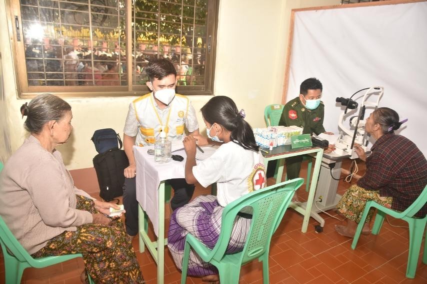ထိုသို့ ဆောင်ရွက်ပေးရာတွင် ယနေ့တွင် ဆေးကုသမှုဆိုင်ရာရောဂါ ၁၀၉ ဦး၊ ခွဲစိတ်ရောဂါ ၄၃ ဦး၊ သားဖွား/ မီးယပ်ရောဂါ ၃၀ ဦး၊ ကလေးရောဂါ ၂၀ ဦး၊ အရိုးရောဂါ ၁၁၁ ဦး၊ နား/ နှာခေါင်း/ လည်ချောင်းရောဂါ ၅၀ ဦး၊ မျက်စိရောဂါ ၂၁၀ ဦးနှင့် သွားနှင့်ခံတွင်းရောဂါ ၅၇ ဦးတို့ကို လိုအပ်သည့် ဆေးဝါးကုသမှုများ ဆောင်ရွက် ပေးသည်။ ထို့အပြင် ခွဲစိတ်ကုသရန်လိုအပ်သူ အထွေထွေခွဲစိတ်လူနာ ၁၂ ဦး၊ မျက်စိခွဲစိတ်လူနာ ၃၂ ဦး၊ ဓာတ်မှန်ရိုက်လူနာ ၁ ဦး၊ အာထရာဆောင်းဖြင့် စမ်းသပ် စစ်ဆေးလူနာ ၄၇ ဦး၊ ECG ဖြင့် နှလုံးစမ်းသပ်လူနာ ၇၇ ဦးနှင့် ဓာတ်ခွဲစမ်းသပ်လူနာ ၃၅ ဦးတို့ကို ရောဂါရှာဖွေစမ်းသပ် ကုသပေးခြင်းများ ဆောင်ရွက် ပေးနိုင်ခဲ့သည်။