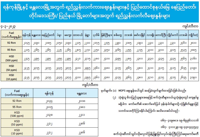 ရန်ကုန်မြို့နှင့် မန္တလေးမြို့အတွက် ရည်ညွှန်းလက်ကားဈေးနှုန်းများနှင့် ပြည်ထောင်စုနယ်မြေ နေပြည်တော်၊ တိုင်းဒေသကြီး/ ပြည်နယ် မြို့တော်များအတွက် ရည်ညွှန်းလက်လီဈေးနှုန်းများ 03/04/2023