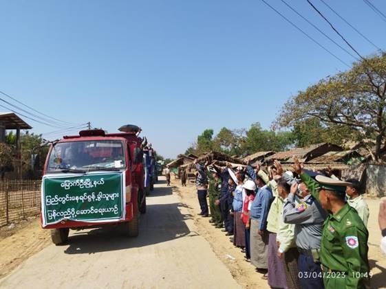 ဆက်လက်၍ ပြည်နယ်အစိုးရအဖွဲ့နှင့်တပ်မတော်တို့မှ စီစဉ်ဆောင်ရွက်ပေးမှုဖြင့် မြောက်ဦးမြို့နယ်အတွင်းရှိ ယာယီခိုလှုံရာစခန်းများမှ ၎င်းတို့၏ နေရပ်အသီးသီးသို့ပြန်လည်ထွက်ရှိကြမည့် ယာယီနေရပ်စွန့်ခွာသူ အိမ်ထောင်စုဝင်များ၏ အိမ်သုံးကုန်ပစ္စည်းများအား အနောက်ပိုင်းတိုင်းစစ်ဌာနချုပ် နယ်မြေခံတပ်မတော်သားများ၊ မြန်မာနိုင်ငံရဲတပ်ဖွဲ့ဝင်များ၊ မီးသတ်တပ်ဖွဲ့ဝင်များနှင့် ဌာဆိုင်ရာဝန်ထမ်းများက မော်တော်ယာဉ်များ၊ စက်လှေများပေါ်သို့ ကူညီသယ်ယူပို့ဆောင်ပေးကြပြီး ၎င်းတို့၏ နေရပ် ကျေးရွာများအရောက် အခမဲ့ပို့ဆောင်ပေးခဲ့ကြောင်း သတင်းရရှိသည်။