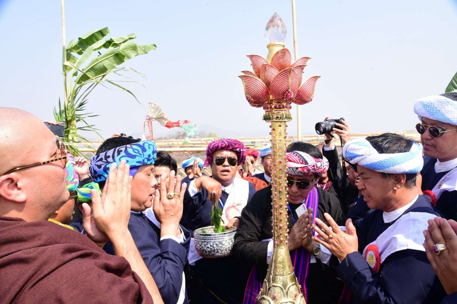 ထို့နောက် ဗိုလ်ပန္တကုန်းတော် မဟာဝံသဗုဒ္ဓဂယာစေတီတော်မြတ်ကြီး စိန်ဖူးတော်များကို နိုင်ငံတော်စီမံအုပ်ချုပ်ရေးကောင်စီအဖွဲ့ဝင် ဦးခွန်စံလွင်၊ ပြည်နယ်ဝန်ကြီးချုပ် ဦးအောင်ဇော်အေးတို့က ဆရာတော်သံဃာတော်များထံဆက်ကပ်ကြပြီး ရွှေထီးတော်နှင့် ဘုံအဆင့်တို့ကို ပြည်နယ်တရားလွတ်တော် တရားသူကြီးချုပ်၊ ပြည်နယ်ဝန်ကြီးများ၊ ပြည်နယ်ဥပဒေချုပ်၊ ပြည်နယ်အစိုးရ အဖွဲ့အတွင်းရေးမှူး၊ ပအိုဝ်းကိုယ်ပိုင်အုပ်ချုပ်ခွင့်ရဒေသ စီမံအုပ်ချုပ်ရေးအဖွဲ့ဥက္ကဋ္ဌနှင့် အဖွဲ့ဝင်များ၊ အလှူဒါယကာများက ဆရာတော်၊ သံဃာများထံ ဆက်ကပ်ကြသည်။