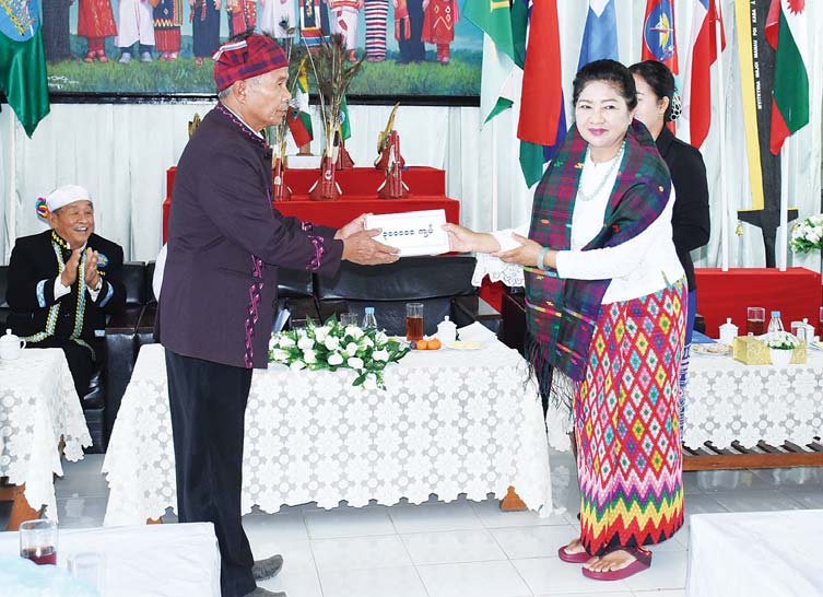 ယင်းနောက် ပြည်နယ်ဝန်ကြီးချုပ်က ယနေ့မိမိတို့ တိုင်းရင်းသားစာပေနှင့်ယဉ်ကျေးမှုအသင်း အဖွဲ့တာဝန်ရှိသူများအနေဖြင့် မိမိစာပေယဉ်ကျေးမှုများကို ထိန်းသိမ်းရာတွင် မိမိတို့ပြည်နယ်အစိုးရအဖွဲ့၊ ဌာနဆိုင်ရာများနှင့် ဝိုင်းဝန်းပူးပေါင်းဆောင်ရွက်သွားကြရန်လိုကြောင်း တိုက်တွန်းပြောကြားခဲ့ပြီး နိုင်ငံတော်စီမံအုပ်ချုပ်ရေးကောင်စီအဖွဲ့ဝင်၊ ပြည်ထောင်စုဝန်ကြီးနှင့် ပြည်နယ်ဝန်ကြီးချုပ်တို့က တက်ရောက်လာကြသည့် တိုင်းရင်းသားစာပေနှင့်ယဉ်ကျေးမှုအသင်းအဖွဲ့ ၁၄ ခုတို့အတွက် တစ်ဖွဲ့လျှင်ထောက်ပံ့ငွေကျပ် ၃ သိန်းစီနှင့် အမှတ်တရလက်ဆောင်များကို အသီးသီးပေးအပ်ချီးမြှင့်ခဲ့ကြသည်။