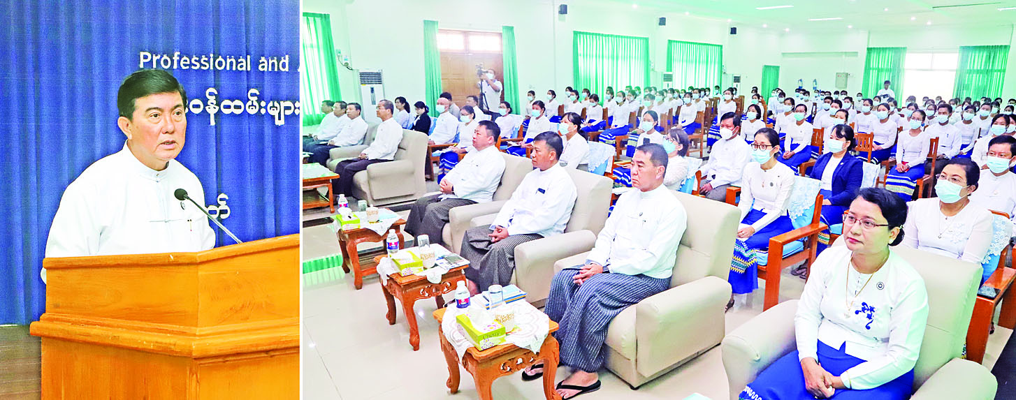 ဝန်ထမ်းသစ်များအနေဖြင့် နိုင်ငံတော်က ခန့်အပ်ထားသည့် တရားဝင် နိုင်ငံ့ဝန်ထမ်းများ ဖြစ်လာသည့်အတွက် ဝန်ထမ်းများသိသင့်သိအပ်သော နိုင်ငံ့ဝန်ထမ်းသစ္စာအဓိဋ္ဌာန် (၆)ချက်၊ ဝန်ထမ်းစည်းမျဉ်းစည်းကမ်းများ၊ ဝန်ထမ်းကျင့်ဝတ်များနှင့် သက်ဆိုင်ရာဌာနများမှ သတ်မှတ်ထားသည့် လုပ်ထုံးလုပ်နည်းများကို သိရှိလိုက်နာရန် လိုအပ်ကြောင်း။