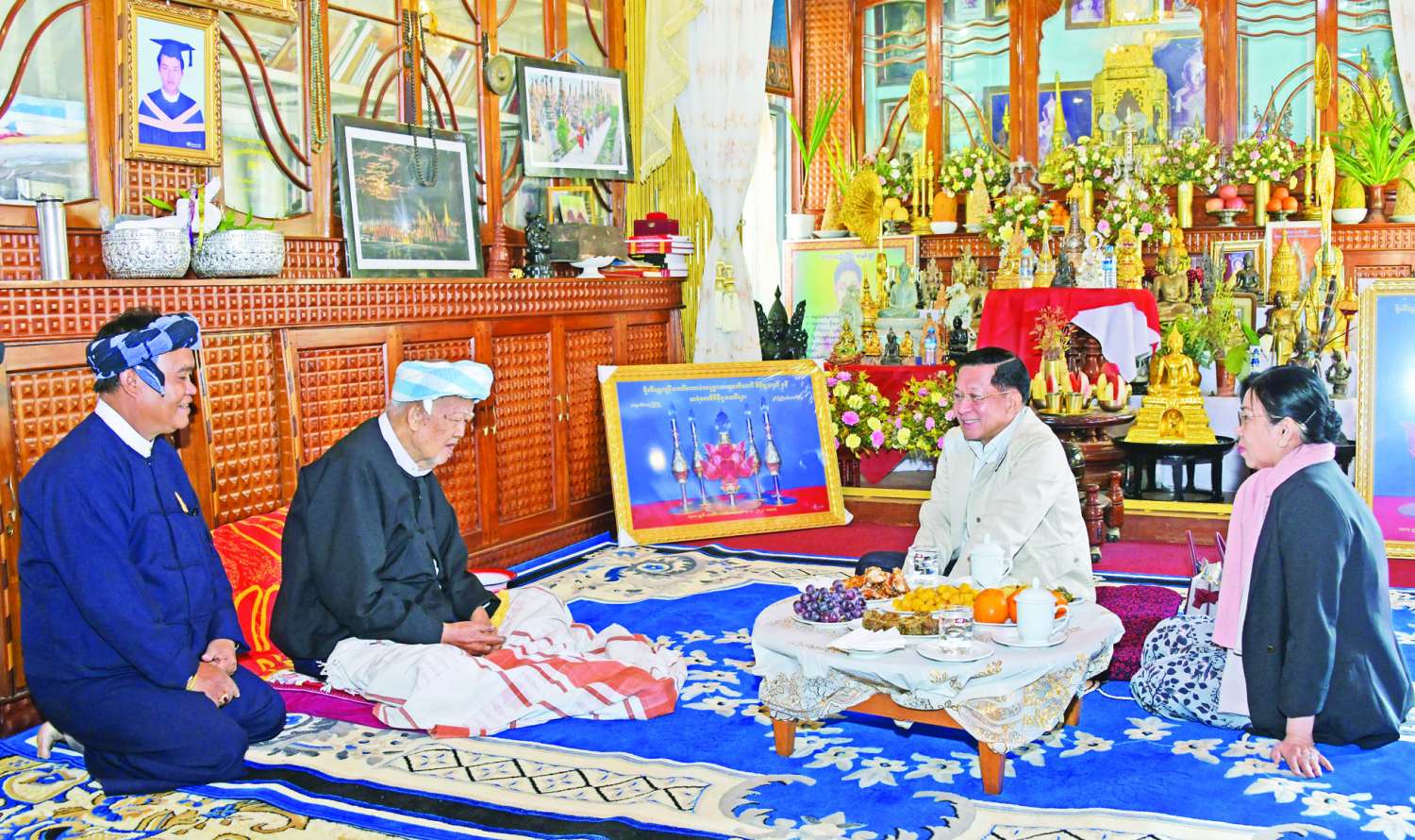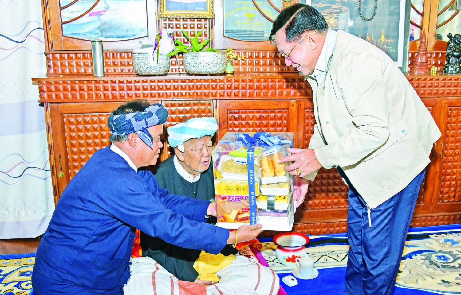 ထို့နောက် နိုင်ငံတော်စီမံအုပ်ချုပ်ရေးကောင်စီဥက္ကဋ္ဌ နိုင်ငံတော်ဝန်ကြီးချုပ်နှင့်အဖွဲ့ဝင်များသည် ပအိုဝ်းအမျိုးသားခေါင်းဆောင်၊ ပအိုဝ်းအမျိုးသားအဖွဲ့ချုပ်(PNO)နာယက ဦးအောင်ခမ်းထီ နေအိမ်သို့ရောက်ရှိကြပြီး နိုင်ငံတော်စီမံအုပ်ချုပ်ရေးကောင်စီဥက္ကဋ္ဌ နိုင်ငံတော်ဝန်ကြီးချုပ်က ဦးအောင်ခမ်းထီ၏ ကျန်းမာရေးအခြေအနေများကို မေးမြန်းအားပေးစကားပြောကြားသည်။
