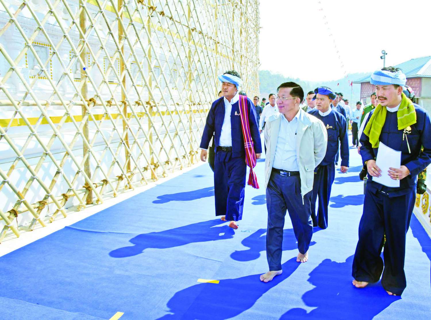 နိုင်ငံတော်စီမံအုပ်ချုပ်ရေးကောင်စီဥက္ကဋ္ဌ နိုင်ငံတော်ဝန်ကြီးချုပ် ဗိုလ်ချုပ်မှူးကြီး မင်းအောင်လှိုင်သည် ယနေ့နံနက်ပိုင်းတွင် ဇနီးဒေါ်ကြူကြူလှနှင့် ခရီးစဉ်တွင်လိုက်ပါလာသည့် အဖွဲ့ဝင်များ၊ ရှမ်းပြည်နယ်ဝန်ကြီးချုပ်၊ အရှေ့ပိုင်းတိုင်းစစ်ဌာနချုပ် တိုင်းမှူးနှင့် တာဝန်ရှိသူများလိုက်ပါ၍ ပအိုဝ်းကိုယ်ပိုင်အုပ်ချုပ်ခွင့်ရဒေသ၊ ကျောက်တလုံးကြီးမြို့သို့ သွားရောက်၍ ဒေသဖွံ့ဖြိုးတိုးတက်ရေးဆိုင်ရာများကို ဆွေးနွေးမှာကြားသည်။