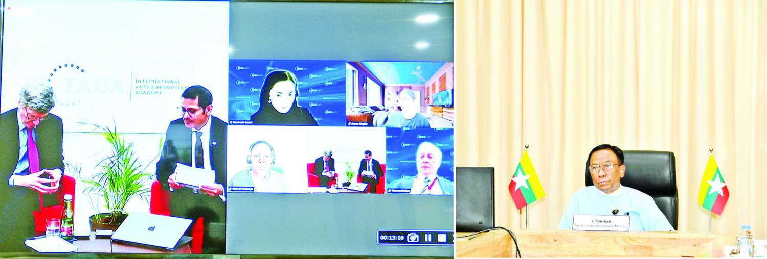 International Anti-Corruption Academy (IACA) က ကြီးမှူးကျင်းပသည့် စီးပွားရေးဆိုင်ရာ ကျွမ်းကျင်ပညာရှင် Mr. Jeffery D. Sachs ၏ “ကုလသမဂ္ဂ စဉ်ဆက်မပြတ်ဖွံ့ဖြိုးတိုးတက်ရေး ရည်မှန်းချက်ပန်းတိုင်များကို အောင်မြင်စွာအကောင်အထည်ဖော်ဆောင်ရွက်ရာတွင် အဂတိလိုက်စားမှု၏ ဆိုးကျိုးသက်ရောက်မှုများ” ဆွေးနွေးပွဲကို ယမန်နေ့ညနေပိုင်းက Hybrid Format ဖြင့်ကျင်းပရာ မြန်မာနိုင်ငံအဂတိ လိုက်စားမှုတိုက်ဖျက်ရေးကော်မရှင်ဥက္ကဋ္ဌ ဒေါက်တာဌေးအောင် ဦးဆောင်၍ ကိုယ်စားလှယ်ခုနစ်ဦး ပါဝင်တက်ရောက်ခဲ့သည်။