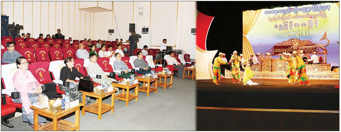 နေပြည်တော်ရှိ အနုပညာဦးစီးဌာန လေ့ကျင့်ရေးဇာတ်ရုံ၌ (၇၈)နှစ်မြောက် တပ်မတော်နေ့ကို ဂုဏ်ပြုသော “ရွှေမြန်မာအငြိမ့်”ဝတ်စုံပြည့် အစမ်းလေ့ကျင့်မှုကို ပြည်ထောင်စုရွေးကောက်ပွဲ ကော်မရှင်ဥက္ကဋ္ဌ ဦးသိန်းစိုး၊ ဥပဒေရေးရာဝန်ကြီးဌာန ပြည်ထောင်စုဝန်ကြီး ပြည်ထောင်စုရှေ့နေချုပ် ဒေါက်တာသီတာဦး၊ ပြန်ကြားရေးဝန်ကြီးဌာန ပြည်ထောင်စုဝန်ကြီး ဦးမောင် မောင်အုန်း၊ သာသနာရေးနှင့် ယဉ်ကျေးမှုဝန်ကြီးဌာန ပြည်ထောင်စုဝန်ကြီး ဦးကိုကို၊ သာသနာရေးနှင့် ယဉ်ကျေးမှုဝန်ကြီးဌာန ဒုတိယဝန်ကြီး ဒေါ်နုမြဇံ၊ အမြဲတမ်အတွင်းဝန်၊ မြဝတီရုပ်မြင်သံကြား တပ်မှူးနှင့် ဌာနဆိုင်ရာတာဝန်ရှိသူများသည် ယနေ့မွန်းလွဲပိုင်းတွင် ကြည့်ရှုစစ်ဆေး အားပေးသည်။