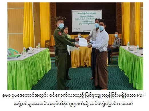 တိုင်းရင်းသားလက်နက်ကိုင်အဖွဲ့နယ်မြေအတွင်း သင်တန်းများ တက်ရောက်ခဲ့ပြီး ပြစ်မှုကျူးလွန်ခြင်း မရှိခဲ့သည့် ဥပဒေဘောင်အတွင်းဝင်ရောက်လာသော PDF အဖွဲ့ဝင်များအား ပြန်လည်ကြိုဆိုလက်ခံ၍ ၎င်းတို့၏ မိဘအုပ်ထိန်းသူများထံသို့ လွှဲပြောင်းပေး အပ်လျက်ရှိသည်။