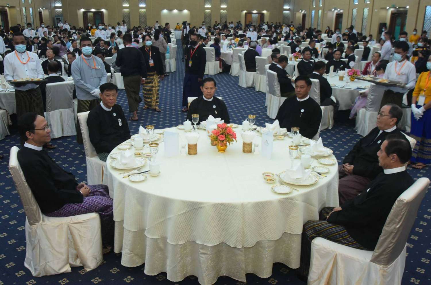 ထို့နောက် နိုင်ငံတော်စီမံအုပ်ချုပ်ရေးကောင်စီ ဒုတိယဥက္ကဋ္ဌဒုတိယဝန်ကြီးချုပ်သည် အခမ်းအနားသို့တက်ရောက်လာကြသူများနှင့်အတူ ဂုဏ်ပြုညစာကိုအတူတကွ သုံးဆောင်သည်။
