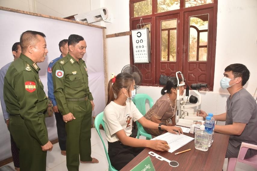 ထိုသို့ ဆောင်ရွက်ပေးရာတွင် ဆေးကုသမှုဆိုင်ရာရောဂါ ၅၇၂ ဦး၊ ခွဲစိတ်ရောဂါ ၄၁ ဦး၊ သားဖွား/ မီးယပ်ရောဂါ ၃၉ ဦး၊ ကလေးရောဂါ ၆၈ ဦး၊ အရိုးရောဂါ ၁၉၇ ဦး၊ နား/ နှာခေါင်း/ လည်ချောင်းရောဂါ ၉၆ ဦး၊ မျက်စိရောဂါ ၃၃၃ ဦးနှင့် သွားနှင့်ခံတွင်းရောဂါ ၁၁၃ ဦးတို့ကို လိုအပ်သည့် ဆေးဝါးကုသမှုများ ဆောင်ရွက်ပေးသည်။ ထို့အပြင် ခွဲစိတ်ကုသရန်လိုအပ်သူ အထွေထွေခွဲစိတ်လူနာ ၆ ဦး၊ မျက်စိခွဲစိတ် လူနာ ၁၄ ဦး၊ ဓာတ်မှန်ရိုက်လူနာ ၃ ဦး၊ အာထရာဆောင်းဖြင့် စမ်းသပ်စစ်ဆေးလူနာ ၉၆ ဦး၊ ECG ဖြင့် နှလုံးစမ်းသပ်လူနာ ၁၁၇ ဦးနှင့် ဓာတ်ခွဲစမ်းသပ်လူနာ ၃၉ ဦးတို့ကို ရောဂါရှာဖွေစမ်းသပ် ကုသပေးခြင်းများ ဆောင်ရွက်ပေးပြီး ဆေးရုံတက်ရောက်ကုသရန်လိုအပ်သူ ၂ ဦးကို နီးစပ်ရာ တပ်မတော်ဆေးရုံများသို့ တက်ရောက်ကုသနိုင်ရေးစီစဉ်ဆောင်ရွက်ပေးသည်။