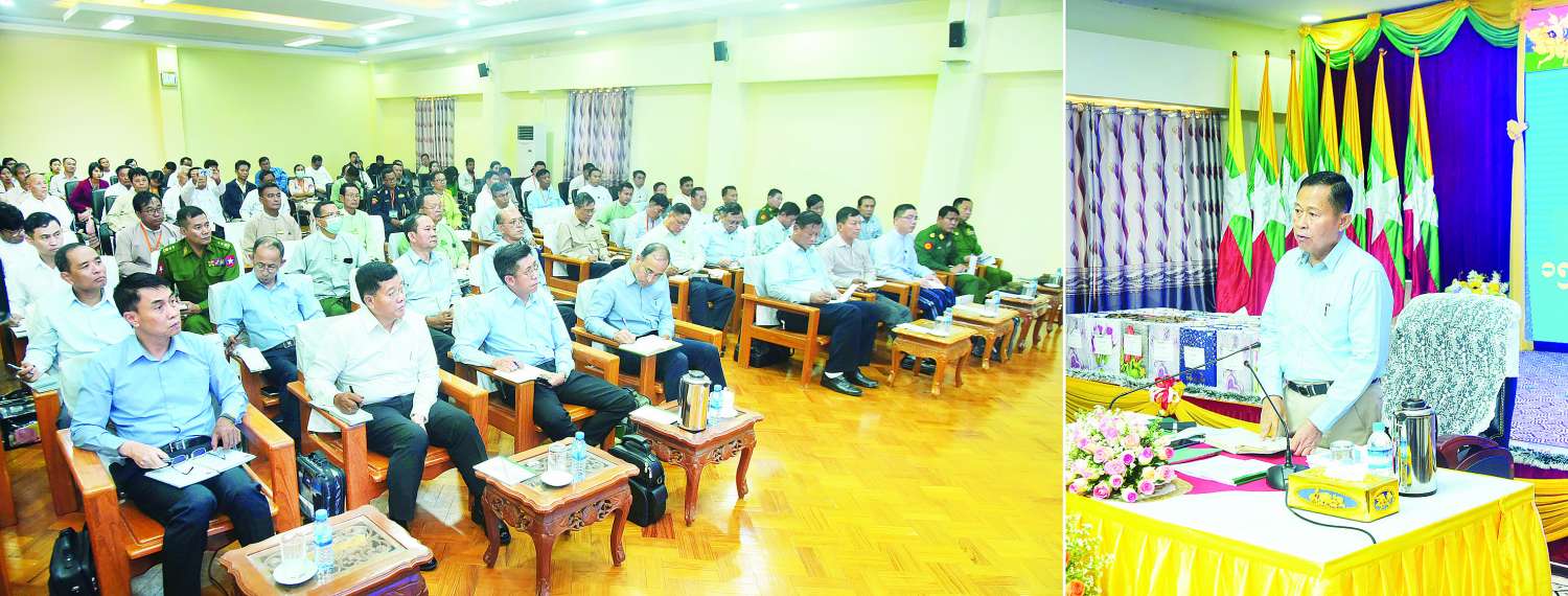 ဦးစွာ ကယားပြည်နယ်ဝန်ကြီးချုပ် ဦးဇော်မျိုးတင် က ကယားပြည်နယ်အတွင်း ဆောင်ရွက်လျက်ရှိ သော အသေးစား၊ အငယ်စားနှင့် အလတ်စား စီးပွားရေးလုပ်ငန်းများနှင့်ပတ်သက်၍ ရှင်းလင်း တင်ပြသည်။
