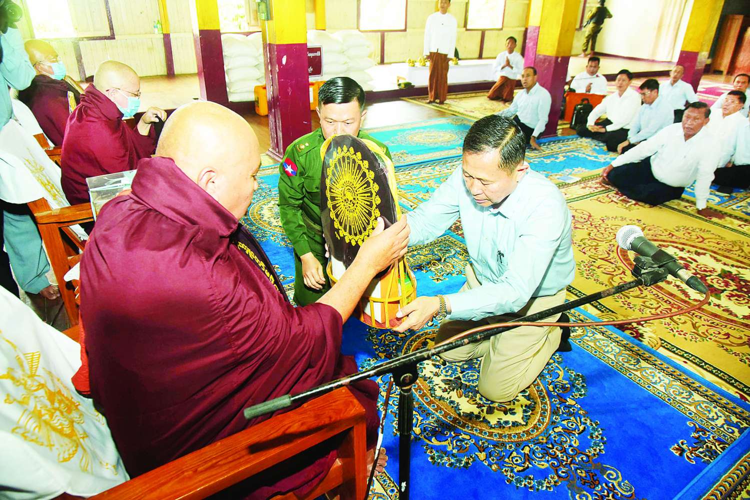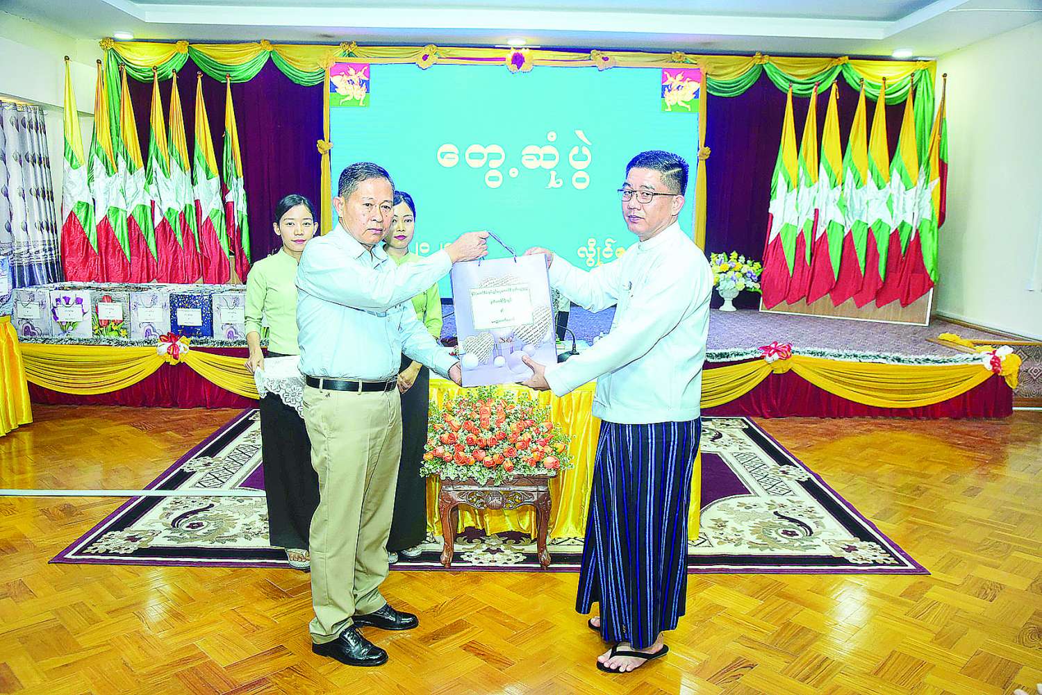 ထို့နောက် နိုင်ငံတော်စီမံအုပ်ချုပ်ရေးကောင်စီဒုတိယဥက္ကဋ္ဌ ဒုတိယတပ်မတော်ကာကွယ်ရေး ဦးစီးချုပ် ကာကွယ်ရေးဦးစီးချုပ်(ကြည်း) ဒုတိယဗိုလ်ချုပ်မှူးကြီး စိုးဝင်း က ဌာနဆိုင်ရာ ဝန်ထမ်းများအတွက် လက်ဆောင်ပစ္စည်းများပေးအပ်ရာ ပြည်နယ်ဝန်ကြီးချုပ် ဦးဇော်မျိုးတင်က လက်ခံရယူသည်။