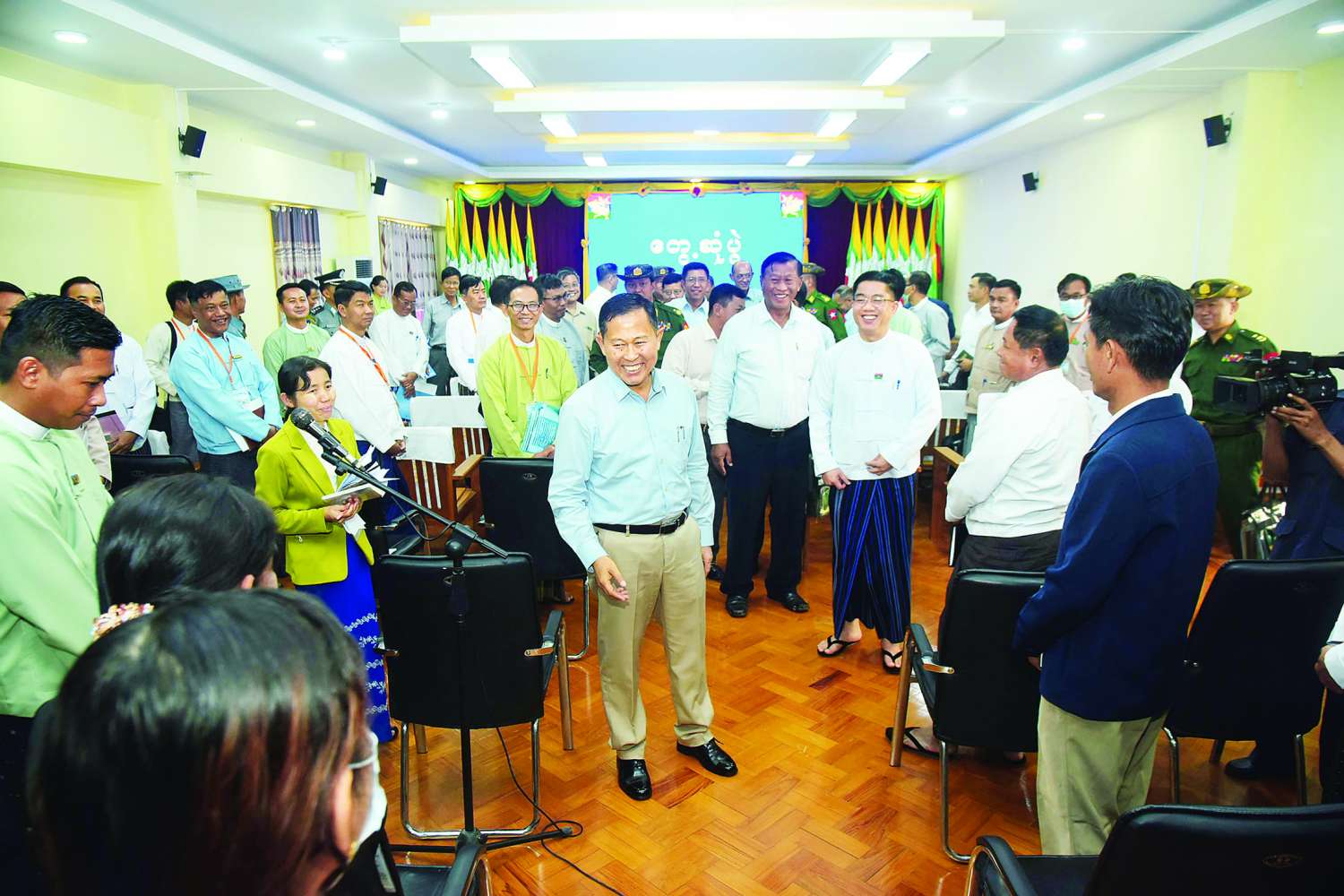 ကယားပြည်နယ်အတွင်းရှိ အသေးစား၊ အငယ်စားနှင့် အလတ်စား (MSME) စီးပွားရေး လုပ်ငန်းရှင်များနှင့် ဌာနဆိုင်ရာတာဝန်ရှိသူများအား ယနေ့နံနက်ပိုင်းတွင် နိုင်ငံတော်စီမံအုပ်ချုပ်ရေး ကောင်စီ ဒုတိယဥက္ကဋ္ဌ ဒုတိယတပ်မတော်ကာကွယ်ရေးဦးစီးချုပ် ကာကွယ်ရေးဦးစီးချုပ်(ကြည်း) ဒုတိယဗိုလ်ချုပ်မှူးကြီး စိုးဝင်း ကယားပြည်နယ် အစိုးရအဖွဲ့ရုံးအစည်းအဝေးခန်းမ၌ တွေ့ဆုံ အမှာစကားပြောကြားသည်။