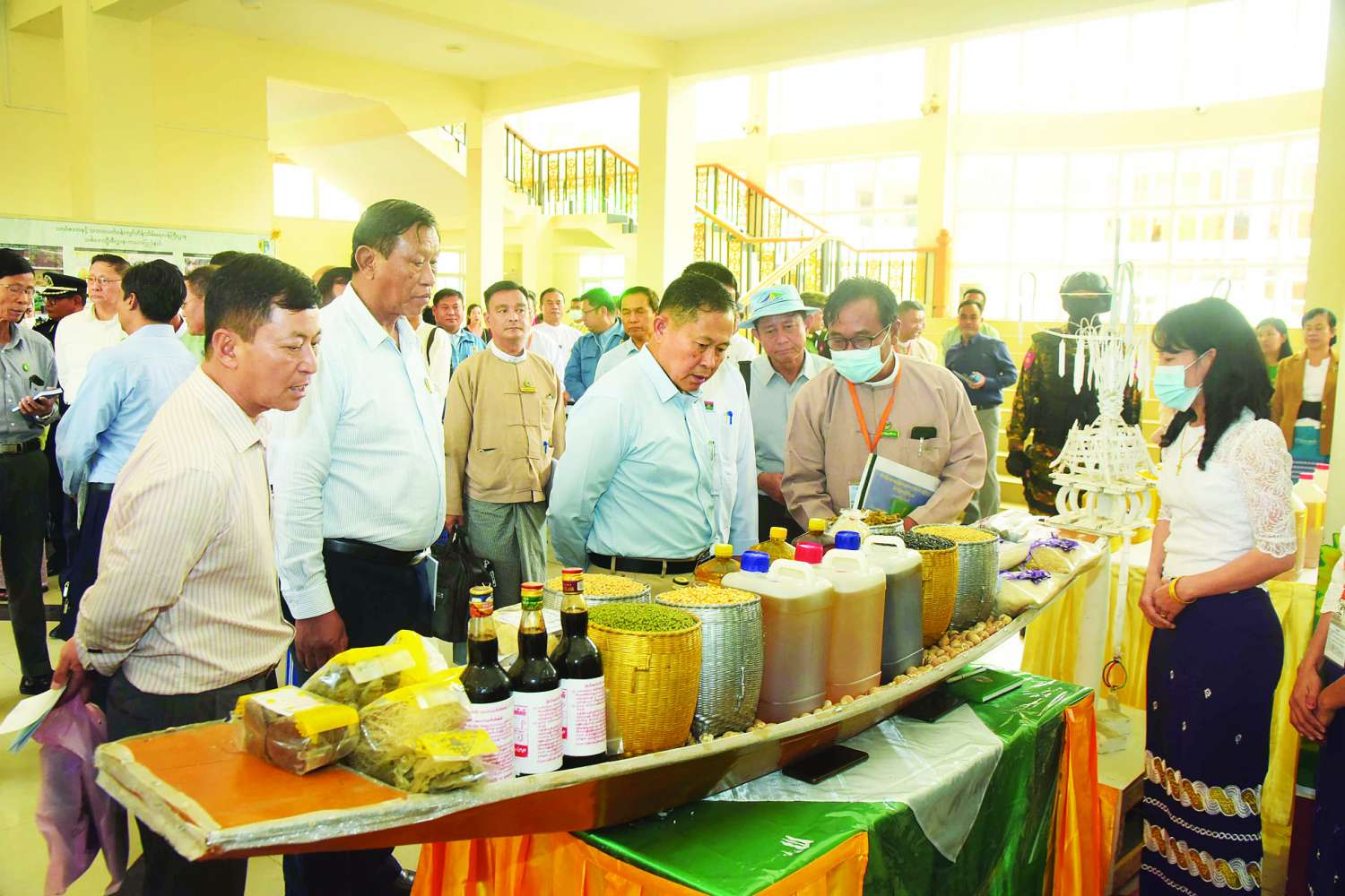 ယင်းနောက် နိုင်ငံတော်စီမံအုပ်ချုပ်ရေးကောင်စီဒုတိယဥက္ကဋ္ဌ ဒုတိယတပ်မတော်ကာကွယ်ရေး ဦးစီးချုပ် ကာကွယ်ရေးဦးစီးချုပ်(ကြည်း)နှင့် အဖွဲ့ဝင်များသည် ဒေသထွက်ကုန်ပစ္စည်းများ၊ စားသောက်ကုန်၊ လူသုံးကုန်၊ စက်မှုလက်မှုထုတ်ကုန်၊ ရိုးရာလက်မှုထုတ်ကုန်များစသည့် ထုတ်ကုန်ပစ္စည်းများ ခင်းကျင်းပြသထားမှုများကို ကြည့်ရှုကြရာ တာဝန်ရှိသူများက လိုက်လံရှင်းလင်း ပြသကြသည်။