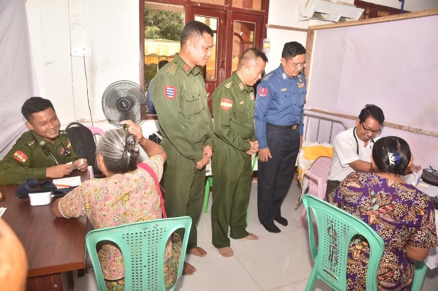 ထိုသို့ ဆောင်ရွက်ပေးရာ ယနေ့တွင် ဆေးကုသမှုဆိုင်ရာရောဂါ ၁၉၀ ဦး၊ ခွဲစိတ်ရောဂါ ၂၂ ဦး၊ သားဖွား/ မီးယပ်ရောဂါ ၂၂ ဦး၊ ကလေးရောဂါ ၂၉ ဦး၊ အရိုးရောဂါ ၅၉ ဦး၊ နား/ နှာခေါင်း/လည်ချောင်းရောဂါ ၃၅ ဦး၊ မျက်စိရောဂါ ၆၁ ဦးနှင့် သွားနှင့်ခံတွင်းရောဂါ ၇ ဦးတို့ကို လိုအပ်သည့် ဆေးဝါးကုသမှုများ ဆောင်ရွက်ပေးသည်။ ထို့အပြင် အထွေထွေခွဲစိတ်လူနာ ၂ ဦး၊ မျက်စိခွဲစိတ်လူနာ ၅ ဦး၊ အာထရာဆောင်းဖြင့် စမ်းသပ်စစ်ဆေးလူနာ ၄၅ ဦး၊ ECG ဖြင့် နှလုံးစမ်းသပ်လူနာ ၇၅ ဦးနှင့် ဓာတ်ခွဲစမ်းသပ်လူနာ ၂၀ ဦးတို့ကို ရောဂါရှာဖွေစမ်းသပ် ကုသပေးခြင်းများဆောင်ရွက်ပေးပြီး ဆေးရုံတက်ရောက်ကုသရန်လိုအပ်သူ ၃ ဦးတို့ကို နီးစပ်ရာတပ်မတော်ဆေးရုံများသို့ တက်ရောက်ကုသနိုင်ရေး စီစဉ်ဆောင်ရွက်ပေးသည်။
