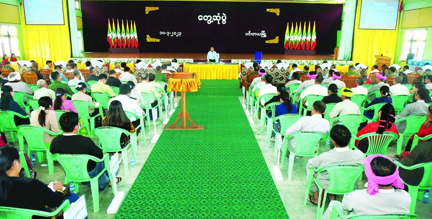နိုင်ငံတော်စီမံအုပ်ချုပ်ရေးကောင်စီဒုတိယဥက္ကဋ္ဌ ဒုတိယတပ်မတော်ကာကွယ်ရေးဦးစီးချုပ် ကာကွယ်ရေးဦးစီးချုပ်(ကြည်း) ဒုတိယဗိုလ်ချုပ်မှူးကြီး စိုးဝင်းသည် ရှမ်းပြည်နယ်(တောင်ပိုင်း) ဓနုကိုယ်ပိုင်အုပ်ချုပ်ခွင့်ရ ဒေသအတွင်းရှိ အသေးစား၊ အငယ်စားနှင့် အလတ်စား(MSME) စီးပွားရေးလုပ်ငန်းရှင်များ၊ ဌာနဆိုင်ရာတာဝန်ရှိသူများနှင့် ဒေသခံတိုင်းရင်းသားများအား ယနေ့နံနက်ပိုင်းတွင် ဓနုကိုယ်ပိုင်အုပ်ချုပ်ခွင့်ရဒေသ ပင်းတယမြို့ဒေသခန်းမ၌ သွားရောက်တွေ့ဆုံသည်။