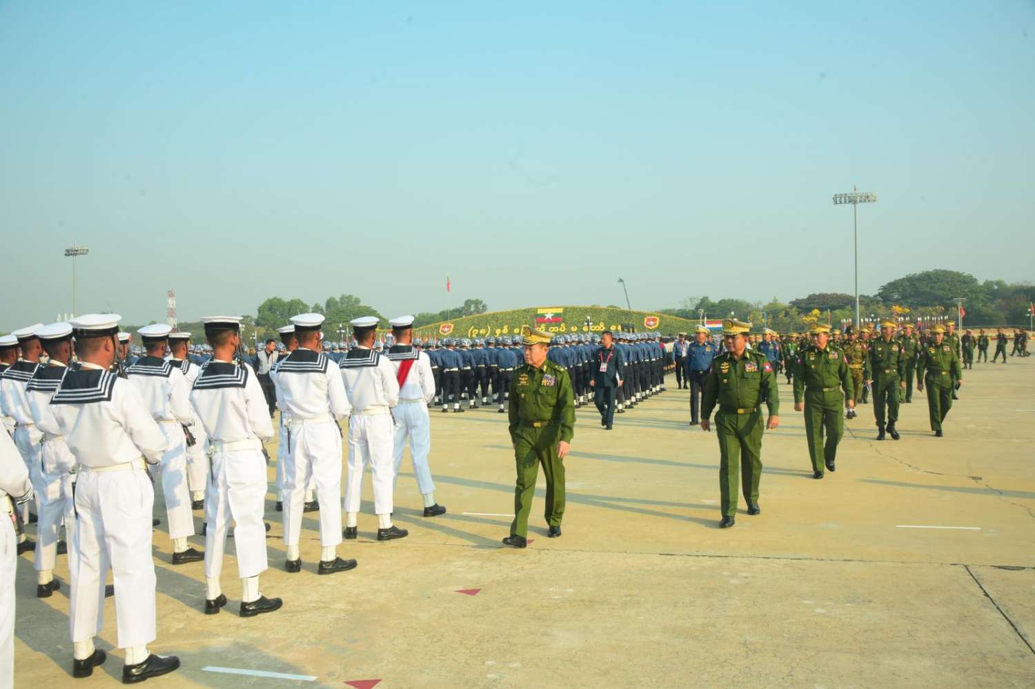 ထိုသို့လေ့ကျင့်နေမှုကို နိုင်ငံတော်စီမံအုပ်ချုပ်ရေးကောင်စီ ဒုတိယဥက္ကဋ္ဌ၊ ဒုတိယတပ်မတော်ကာကွယ်ရေးဦးစီးချုပ် ကာကွယ်ရေးဦးစီးချုပ်(ကြည်း) ဒုတိယဗိုလ်ချုပ်မှူးကြီး စိုးဝင်းနှင့်အတူ ကာကွယ်ရေးဝန်ကြီးဌာန၊ ပြည်ထောင်စုဝန်ကြီး ဗိုလ်ချုပ်ကြီး မြထွန်းဦး၊ တပ်မတော်နေ့ကျင်းပရေး ဦးစီးကော်မတီဥက္ကဋ္ဌ ညှိနှိုင်းကွပ်ကဲရေးမှူး(ကြည်း၊ ရေ၊ လေ) ဗိုလ်ချုပ်ကြီး မောင်မောင်အေး၊ ကာကွယ်ရေးဦးစီးချုပ်(ရေ) ဗိုလ်ချုပ်ကြီး မိုးအောင်၊ ကာကွယ်ရေးဦးစီးချုပ်(လေ) ဗိုလ်ချုပ်ကြီး ထွန်းအောင်၊ ကာကွယ်ရေး ဦးစီးချုပ်ရုံးမှတပ်မတော်အရာရှိကြီးများ၊ တပ်မတော်နေ့ ကျင်းပရေးစီမံခန့်ခွဲရေးကော်မတီ ဥက္ကဋ္ဌ၊ နေပြည်တော်တိုင်းစစ်ဌာနချုပ်တိုင်းမှူး ဗိုလ်ချုပ်ဇော်ဟိန်းနှင့် တာဝန်ရှိသူများက သွားရောက်ကြည့်ရှုစစ်ဆေးကြပြီး နိုင်ငံတော်စီမံအုပ်ချုပ်ရေးကောင်စီ ဒုတိယဥက္ကဋ္ဌ၊ ဒုတိယတပ်မတော်ကာကွယ်ရေးဦးစီးချုပ် ကာကွယ်ရေးဦးစီးချုပ်(ကြည်း)က လိုအပ်သည်များကို တာဝန်ရှိသူများနှင့် ပေါင်းစပ်ညှိနှိုင်းဆောင်ရွက်ပေးသည်။