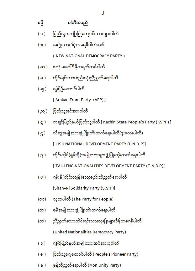 နိုင်ငံရေးပါတီများတည်ထောင်ခွင့်၊ မှတ်ပုံတင်ခွင့်လျှောက်ထားခြင်းနှင့် ပါတီဖျက်သိမ်းခြင်းတို့နှင့်စပ်လျဉ်း၍ ကြေညာခြင်း 03/28/2023