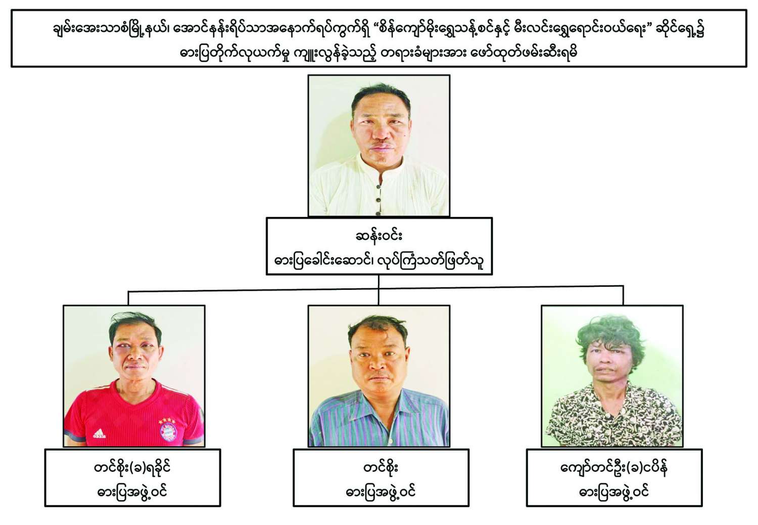 ထို့နောက် မတ် ၂၇ ရက် ညနေပိုင်းတွင် တရားခံ ဆန်းဝင်း၊ တင်စိုး (ခ) ရခိုင်၊ ဖမ်းဆီးရန်ကျန် တရားခံများဖြစ်သည့် တမောင်း၊ ကျော်နိုင်တို့သည် လက်နက်များကိုင်ဆောင်ကာ “စိန်ကျော်မိုး ရွှေသန့်စင်နှင့် မီးလင်းရွှေရောင်းဝယ်ရေးဆိုင်”သို့ မော်တော်ယာဉ်ဖြင့် သွားရောက်ဓားပြတိုက် လုယက်ခဲ့ကြောင်း၊ ထိုသို့ ဓားပြတိုက်လုယက်စဉ် တင်စိုး (ခ) ရခိုင်မှ ၎င်းကိုင်ဆောင်လာသည့် ခြောက်လုံးပြူးသေနတ်ဖြင့် နှစ်ချက်ပစ်ဖောက်ခဲ့ပြီး ဝန်ထမ်းများအားထိုင်ခိုင်းကာ ငွေစက္ကူများ ထည့်ထားသည့် ဆာလာအိတ် လေးအိတ်ကို ကားပေါ်သို့ ပြောင်းရွှေ့တင်ဆောင်ကာ မောင်းနှင် ထွက်ပြေးခဲ့ကြောင်း၊ ယင်းနောက် ငွေစက္ကူအိတ်များနှင့် ဓားပြတိုက်လုယက်ရာတွင် အသုံးပြုသည့် သေနတ် သုံးလက်တို့အား မြစ်ငယ်မြို့၊ ဓနုံးကျေးရွာရှိ ဖမ်းဆီးရန်ကျန် တရားခံ ကျော်နိုင်၏ နေအိမ်နှင့် တရားခံ တင်စိုး (ခ) ရခိုင်၏ နေအိမ်တို့တွင် နေရာခွဲ၍ သိမ်းဆည်းထားခဲ့ကြောင်း၊ ထို့အပြင် ၎င်းတို့နှင့်အတူ ဖမ်းဆီးရမိသည့် မူးယစ်ဆေးဝါးများမှာ ဖယ်ခုံမြို့နယ်၊ လအိကျေးရွာနေ ဖမ်းဆီးရန်ကျန် တရားခံ မောင်ဆန်းမှ ရောင်းချရန်အတွက် ပို့ဆောင်ပေးထားခြင်းဖြစ်ကြောင်း ဖော်ထုတ်သိရှိရသည်။