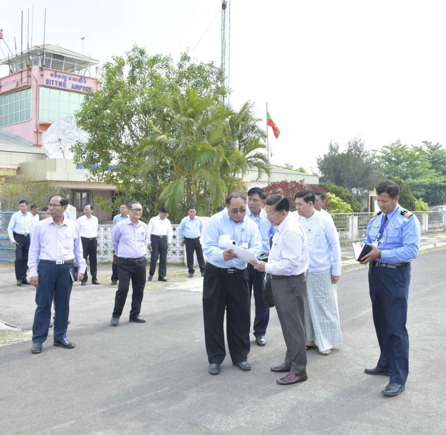 ထို့နောက် နိုင်ငံတော်စီမံအုပ်ချုပ်ရေးကောင်စီဥက္ကဋ္ဌ နိုင်ငံတော်ဝန်ကြီးချုပ်သည် စစ်တွေလေယာဉ်ကွင်း အဆင့်မြှင့်တင်ဆောင်ရွက်နိုင်မည့် အခြေအနေများအားကြည့်ရှု၍ တာဝန်ရှိသူများအား လိုအပ်သည်များ လမ်းညွှန်မှာကြားသည်။