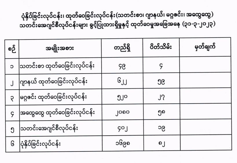 ပုံနှိပ်ခြင်းလုပ်ငန်း၊ ထုတ်ဝေခြင်းလုပ်ငန်း (သတင်းစာ၊ ဂျာနယ်၊ မဂ္ဂဇင်း၊ အထွေထွေ) သတင်းအေဂျင်စီလုပ်ငန်းများ ခွင့်ပြုထားရှိမှုနှင့် ထုတ်ဝေမှုအခြေအနေ (၃၁-၃-၂၀၂၃) 04/05/2023