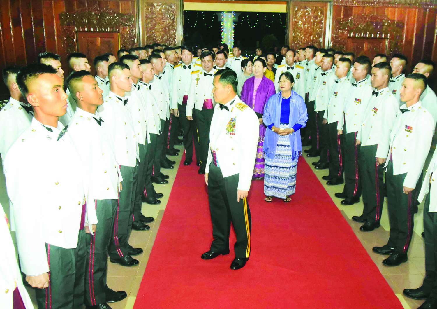ဦးစွာ နိုင်ငံတော်စီမံအုပ်ချုပ်ရေးကောင်စီဒုတိယဥက္ကဋ္ဌ ဒုတိယတပ်မတော်ကာကွယ်ရေးဦးစီးချုပ် ကာကွယ်ရေးဦးစီးချုပ်(ကြည်း) ဒုတိယဗိုလ်ချုပ်မှူးကြီးစိုးဝင်းနှင့် အဖွဲ့ဝင်များသည် ကျောင်းဆင်းအရာရှိများအား ရင်းရင်းနှီးနှီးလိုက်လံနှုတ်ဆက်သည်။ ထို့နောက် နိုင်ငံတော်စီမံအုပ်ချုပ်ရေးကောင်စီဒုတိယဥက္ကဋ္ဌ ဒုတိယတပ်မတော်ကာကွယ်ရေးဦးစီးချုပ် ကာကွယ်ရေးဦးစီးချုပ်(ကြည်း) ဒုတိယဗိုလ်ချုပ်မှူးကြီး စိုးဝင်းနှင့် အဖွဲ့ဝင်များသည် သင်တန်းဆင်း အရာရှိများနှင့်အတူညစာကို အတူတကွ သုံးဆောင်ကြသည်။
