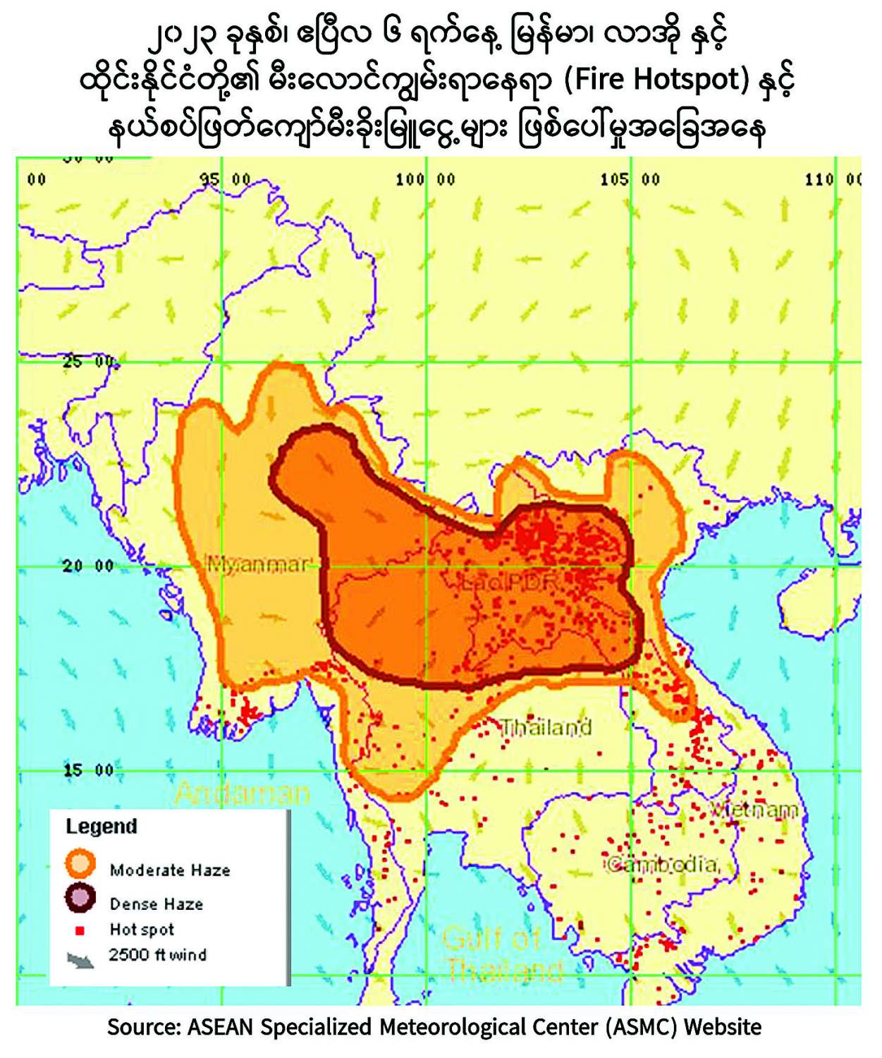 နယ်စပ်ဖြတ်ကျော်မီးခိုးမြူငွေ့ ဖြစ်ပေါ်နိုင်သည့် အခြေအနေများနှင့်စပ်လျဉ်း၍ ASEAN Specialized Meteorological Center (ASMC) မှ ထုတ်ပြန်ထားချက်များအရ-