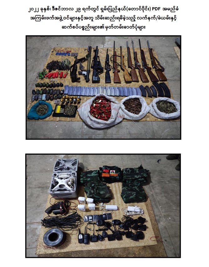 နိုင်ငံတော်အစိုးရမှ အကြမ်းဖက်အုပ်စုအဖြစ် ကြေညာထားသည့် NUG၊ CRPH နှင့် ၎င်းတို့၏ လက်ဝေခံPDF အမည်ခံအဖွဲ့များသည် ပြည်သူအတွက်ဟုသုံးနှုန်း၍ ရဟန်းသံဃာများ၊ ဆရာ၊ ဆရာမများအပါအဝင် နိုင်ငံ့ဝန်ထမ်းများနှင့် ပြည်သူများကို ရက်စက်စွာလုပ်ကြံသတ်ဖြတ်ခြင်း၊ လုယက်ခြင်းများ၊ အပြစ်မဲ့ပြည်သူများ သေကြေပျက်စီးစေရန် ရည်ရွယ်ချက်ဖြင့် ပျော်ပွဲရွှင်ပွဲများ ပြုလုပ်နေသည့် နေရာများတွင် မိုင်းထောင်ဖောက်ခွဲခြင်းများ၊ နိုင်ငံတော်အစိုးရ၏ အုပ်ချုပ်မှုယန္တရား ပျက်ပြားစေရန်အတွက် နိုင်ငံတော်အစိုးရနှင့်ချိတ်ဆက် ဆောင်ရွက်လျက်ရှိသည့် ပြည်သူလူထုပိုင် အဆောက်အဦများအား အကြောင်းမဲ့ဖောက်ခွဲဖျက်ဆီးခြင်းများကို ဥပဒေမဲ့ကျူးလွန်လျက်ရှိသည်။