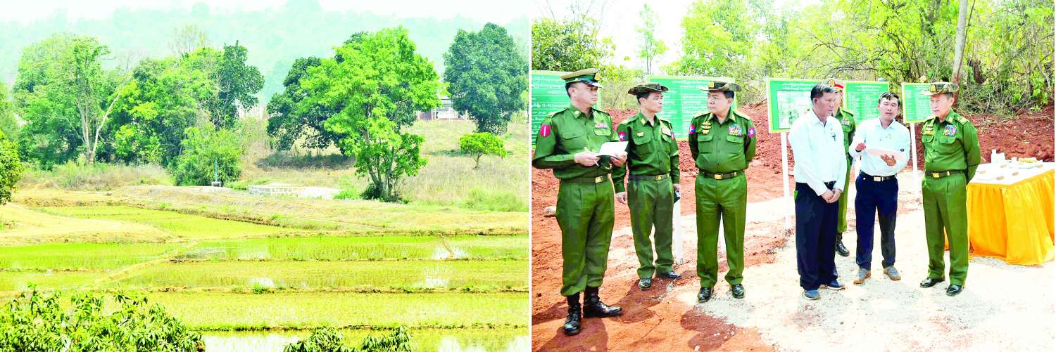 ဆက်လက်၍ နိုင်ငံတော်စီမံအုပ်ချုပ်ရေးကောင်စီဒုတိယဥက္ကဋ္ဌ ဒုတိယတပ်မတော်ကာကွယ်ရေးဦးစီးချုပ်ကာကွယ်ရေးဦးစီး ချုပ်(ကြည်း)နှင့်အဖွဲ့ဝင်များသည် တပ်မတော်(ကြည်း)တိုက်ခိုက်ရေးကျောင်း(ဗထူး)ပေါင်းစည်း လယ်ယာ(ဗထူးစမ်း)သို့ သွားရောက်၍ ဆည်မြောင်းနှင့် ရေအသုံးချမှု စီမံခန့်ခွဲရေးဦးစီးဌာန၏ အကူအညီဖြင့် ရေကျော်တမံအသေးတည်ဆောက်လျက် လယ်မြေသစ် များဖော်ထုတ်၍ ၎င်းလယ်မြေများတွင် အာလူးတစ်ဧကနှင့် နွေစပါးရှစ်ဧက စိုက်ပျိုးထားရှိမှုများကို ကြည့်ရှုစစ်ဆေးရာတပ်မတော်(ကြည်း)တိုက်ခိုက် ရေးကျောင်း(ဗထူး)ကျောင်းအုပ်ကြီးနှင့် တာဝန်ရှိသူများက လုပ်ငန်းဆောင်ရွက်နေမှုများနှင့်ပတ်သက်ပြီး ရှင်းလင်းတင်ပြခဲ့ရာ နိုင်ငံတော်စီမံအုပ်ချုပ်ရေးကောင်စီ ဒုတိယဥက္ကဋ္ဌ ဒုတိယတပ်မတော်ကာကွယ်ရေးဦးစီးချုပ် ကာကွယ်ရေးဦးစီးချုပ်(ကြည်း)က သိရှိလိုသည်များမေးမြန်းပြီး လိုအပ်သည်များ ပေါင်းစပ်ညှိနှိုင်းဆောင်ရွက်ပေးသည်။