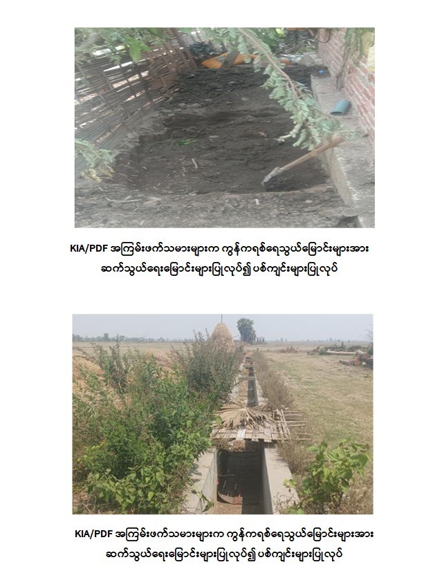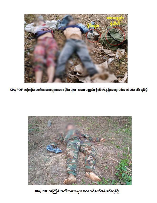 အကြမ်းဖက်အဖွဲ့များအနေဖြင့် ကျေးရွာများ၏ စိုက်ပျိုးရေးလုပ်ငန်းအတွက် ပြုလုပ်ထားသည့် ကွန်ကရစ်ရေသွယ်မြောင်းများအား ဆက်သွယ်ရေးမြောင်းများ အဖြစ်ပြောင်းလဲအသုံးချကာ ပစ်ကျင်းများတူး၍ အခိုင်အမာရွာပုံစံ ခံစစ်စခန်းအဖြစ် လည်းကောင်း၊ မန်ခါးကျေးရွာ တံတားအောက်တွင် သဲအိတ်များအသုံးပြုပြီး ဘန်ကာ တည်ဆောက်၍လည်းကောင်း၊ စီမူလေးကျေးရွာ ဘုန်းကြီးကျောင်းအတွင်း သဲအိတ်များကာရံကာ ခံစစ်ပြင်ဆင်ထား၍လည်းကောင်း တပ်မတော်စစ်ကြောင်းများ၏ ထိုးစစ်များအား အပြင်းအထန်ခုခံတိုက်ခိုက်ခဲ့သော်လည်း တပ်မတော်စစ်ကြောင်းများ ၏ ရွပ်ရွပ်ချွံချွံ ဟန်ချက်ညီညီ ပစ်ကူပစ်အားရယူကာ စနစ်တကျ တိုက်ခိုက် ချေမှုန်းခဲ့သဖြင့် ၎င်းတို့၏လက်နက်/ခဲယမ်း ထောက်ပံ့ရေးနှင့်တရားမဝင်သစ်မှောင်ခို အဓိကဖြတ်သန်းရာ နေရာများဖြစ်သည့် အဆိုပါကျေးရွာများကို ပြန်လည်ထိန်းချုပ်နိုင်ခဲ့ပြီး KIA အဖွဲ့နှင့် PDF အမည်ခံအကြမ်းဖက် သမားများဖရိုဖရဲဖြင့် အရှေ့ဘက်သို့ ဆုတ်ခွာထွက်ပြေးသွားခဲ့သည်။ ၎င်းတို့ဆုတ်ခွာထွက်ပြေးစဉ် ကျေးရွာများအလိုက် နီးစပ်ရာလူနေအိမ်များအား မီးရှို့ဖျက်ဆီးခဲ့သဖြင့် လုံခြုံရေးတပ်ဖွဲ့ဝင်များက မီးငြိမ်းသတ်ခြင်းလုပ်ငန်းများကိုပါ ပူးတွဲဆောင်ရွက်ခဲ့ရသည်။