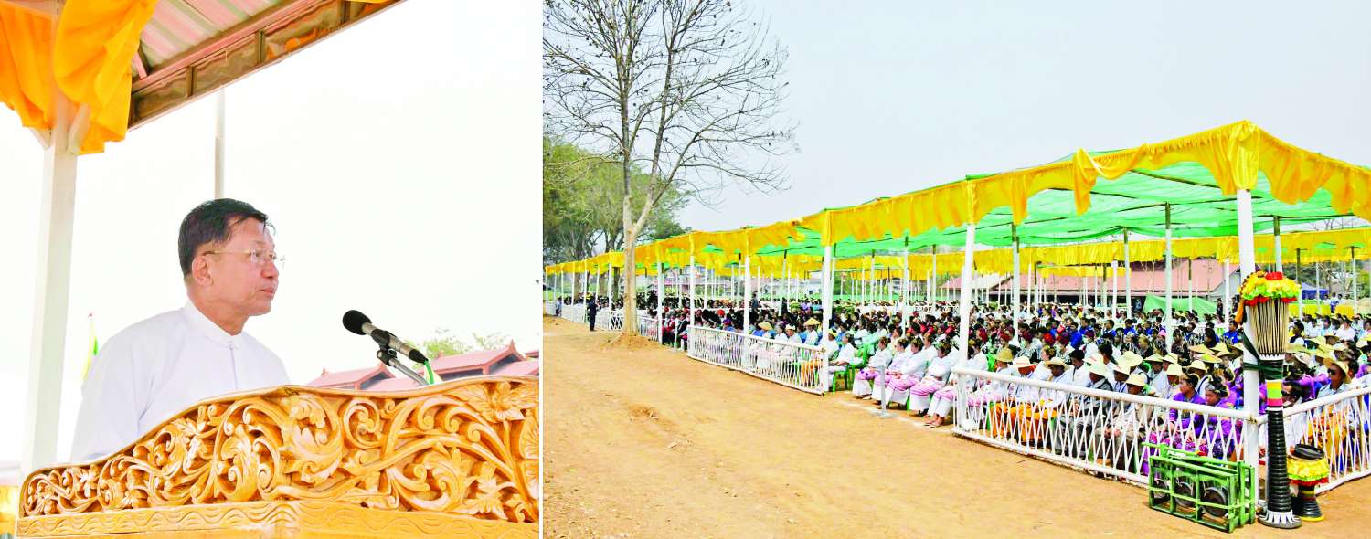 အခမ်းအနားအပြီးတွင် နိုင်ငံတော်စီမံအုပ်ချုပ်ရေးကောင်စီဥက္ကဋ္ဌ နိုင်ငံတော်ဝန်ကြီးချုပ်နှင့် ဇနီး၊ အဖွဲ့ဝင်များသည် ဌာနဆိုင်ရာတာဝန်ရှိသူများ၊ ပြည်သူ့စစ်အဖွဲ့ဝင်များနှင့် ဒေသခံတိုင်းရင်းသားပြည်သူများကို မြန်မာ့ရိုးရာအတာသင်္ကြန်ရေများပက်ဖျန်း၍ နှစ်သစ်ကိုအတူတကွ ရင်းနှီးနွေးထွေးစွာကြိုဆိုခဲ့ကြသည်။ ယင်းနောက် နိုင်ငံတော်စီမံအုပ်ချုပ်ရေးကောင်စီဥက္ကဋ္ဌ နိုင်ငံတော်ဝန်ကြီးချုပ်နှင့်ဇနီး၊ အဖွဲ့ဝင်များ ပြန်လည်ထွက်ခွာရာ ဌာနဆိုင်ရာတာဝန်ရှိသူများနှင့် ဒေသခံတိုင်းရင်းသား ပြည်သူများက ရင်းရင်းနှီးနှီး လက်ပြနှုတ်ဆက်ခဲ့ကြသည်။ (Audio ဖောက်ရန်)