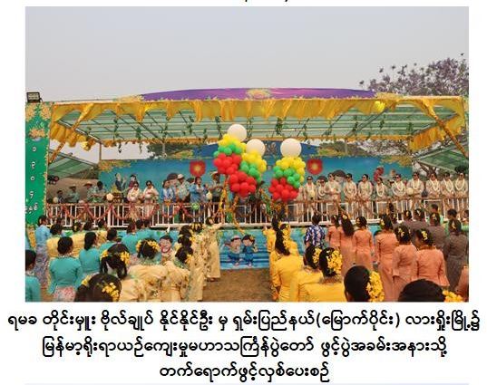 ထို့နောက် အတာသင်္ကြန်ဖွင့်ပွဲအထိမ်းအမှတ်အဖြစ် ယိမ်းအကအလှများဖြင့် ယှဉ်ပြိုင်ကပြဖျော်ဖြေခြင်း၊ စတုဒီသာကျွေးမွေးခြင်းနှင့် ပျော်ရွှင်စွာရေပက်ကစားခြင်းတို့ဖြင့် အတာရေသဘင်ပွဲတော်ကို ပျော်ရွှင်စွာဆင်နွှဲခဲ့ကြကြောင်း သတင်းရရှိသည်။
