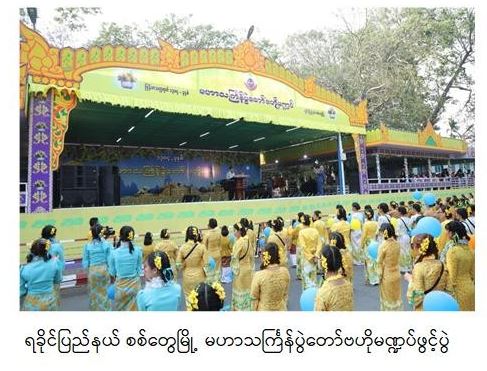မြန်မာ့ရိုးရာအစဉ်အလာနှင့်အညီ မြန်မာသက္ကရာဇ် ၁၃၈၄ ခုနှစ်မှ ၁၃၈၅ ခုနှစ် သို့ ကူးပြောင်းမည့် မြန်မာ့ရိုးရာ မဟာသင်္ကြန်ပွဲတော်ရေကစားမဏ္ဍပ်ဖွင့်ပွဲများကို တိုင်းဒေသကြီးနှင့် ပြည်နယ်များ၊ တိုင်းစစ်ဌာနချုပ်များ၌ ယနေ့ညနေပိုင်းတွင် ကျင်းပပြုလုပ်လျက်ရှိရာ နိုင်ငံတော်စီမံအုပ်ချုပ်ရေးကောင်စီအဖွဲ့ဝင်များ၊ တိုင်းဒေသကြီးနှင့်ပြည်နယ်များမှ ဝန်ကြီးချုပ်များ၊ တိုင်းမှူးများ၊ တိုင်းစစ်ဌာနချုပ်များမှ အရာရှိကြီးများ၊ အရာရှိ၊ စစ်သည်၊ မိသားစုဝင်များ၊ ယိမ်းအကအဖွဲ့များနှင့် ဖိတ်ကြားထားသူများ တက်ရောက်ကြသည်။