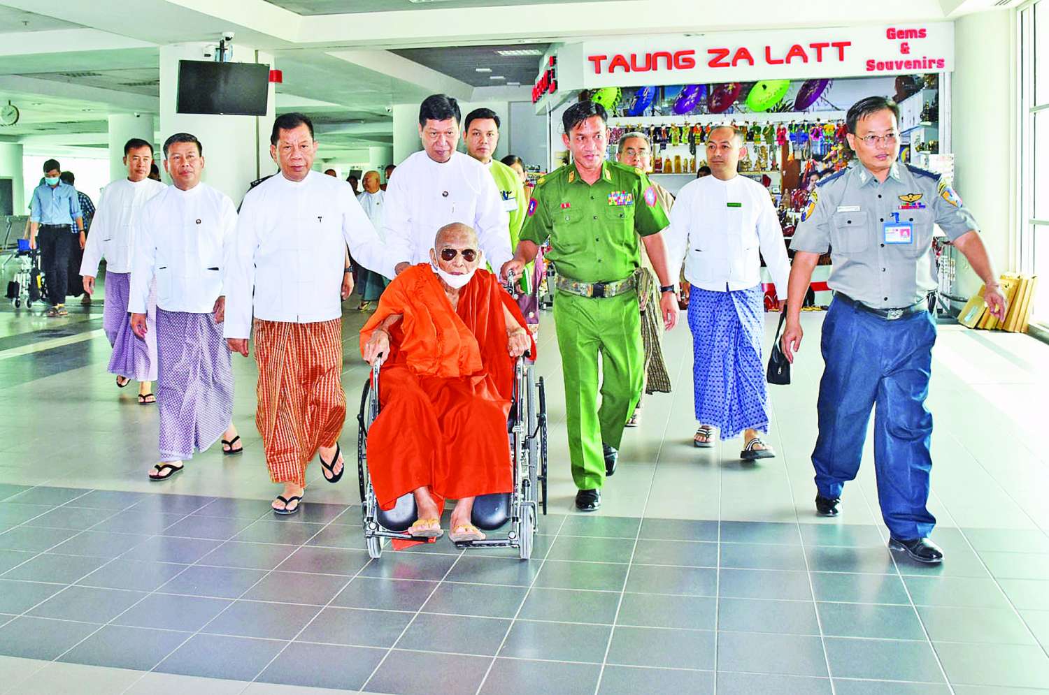 ထို့နောက် လေဆိပ်နားနေဆောင်၌ ဆရာတော်ကြီးသည် ခေတ္တသီတင်းသုံးကာ တိုင်းဒေသကြီး ပြည်သူ့ကျန်းမာရေးနှင့် ကုသရေးဦးစီးဌာနမှ ဒုတိယညွှန်ကြားရေးမှူးချုပ် ဒေါက်တာဝင်းနိုင်နှင့်အတူ အထူးကုဆရာဝန်ကြီးများက ဆရာတော်ကြီးအား ကျန်းမာရေးစောင့်ရှောက်မှုများ ဆောင်ရွက်ပေးကြသည်။