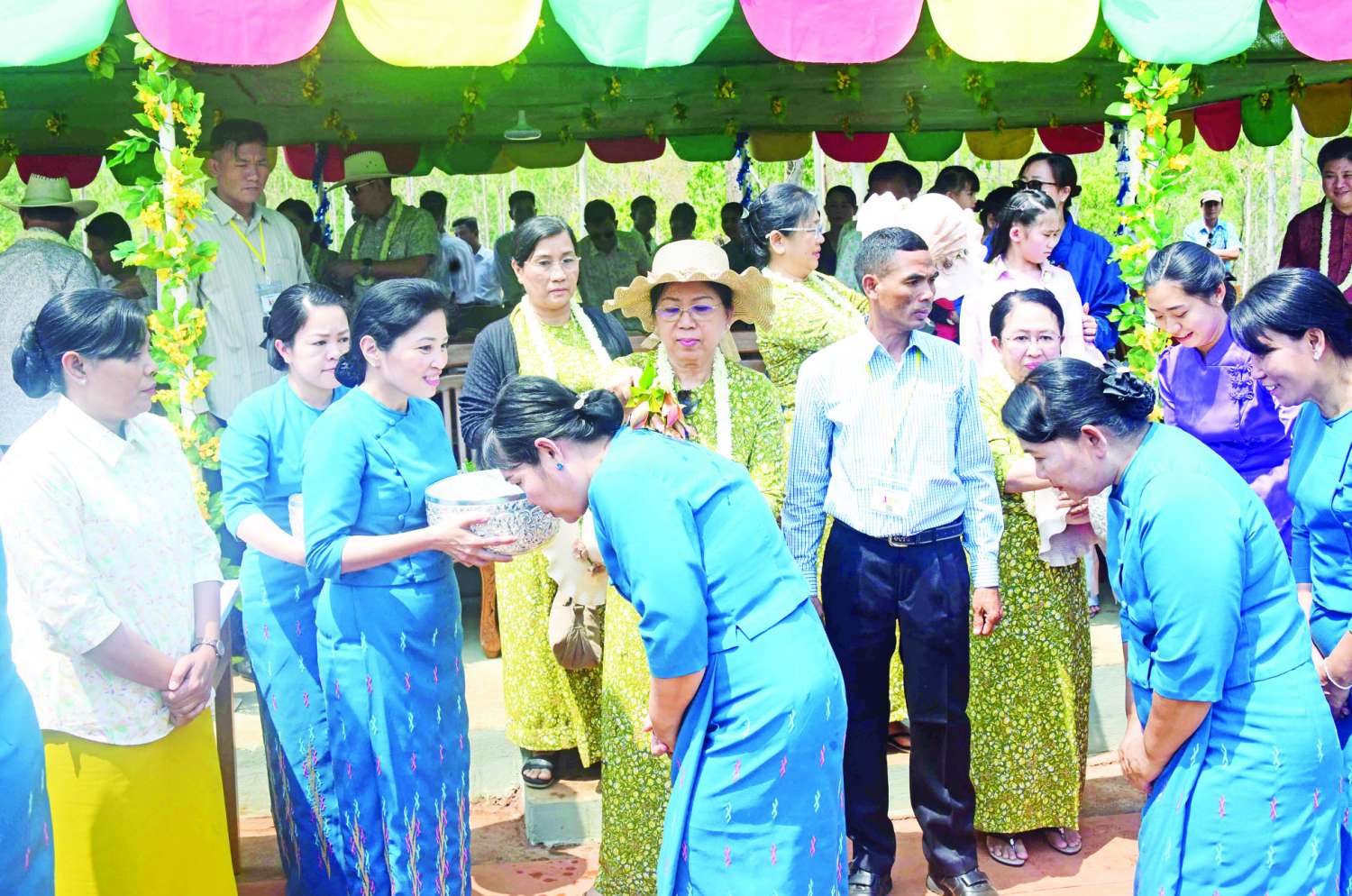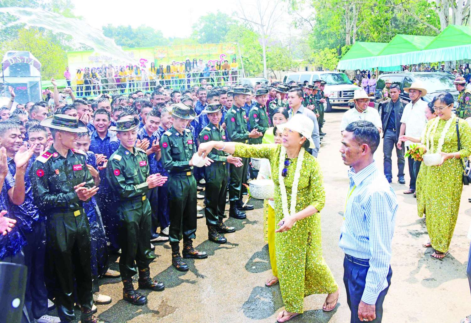 ယင်းနောက် နိုင်ငံတော်စီမံအုပ်ချုပ်ရေးကောင်စီဥက္ကဋ္ဌ တပ်မတော်ကာကွယ်ရေးဦးစီးချုပ်၏ ဇနီးနှင့် အဖွဲ့ဝင်များသည် ရေသဘင်ပွဲတော်ကို ပျော်ရွှင်စွာဆင်နွှဲနေကြသည့် အရာရှိ၊ စစ်သည်၊ မိသားစုများနှင့် ယိမ်းအဖွဲ့များအား အတာရေများပက်ဖျန်းကြပြီး သီဆိုကပြဖျော်ဖြေခဲ့ကြသည့် ယိမ်းအဖွဲ့များနှင့် အရာရှိ၊ စစ်သည် မိသားစု များအား ဂုဏ်ပြုဆုငွေများ ပေးအပ်ချီးမြှင့်သည်။