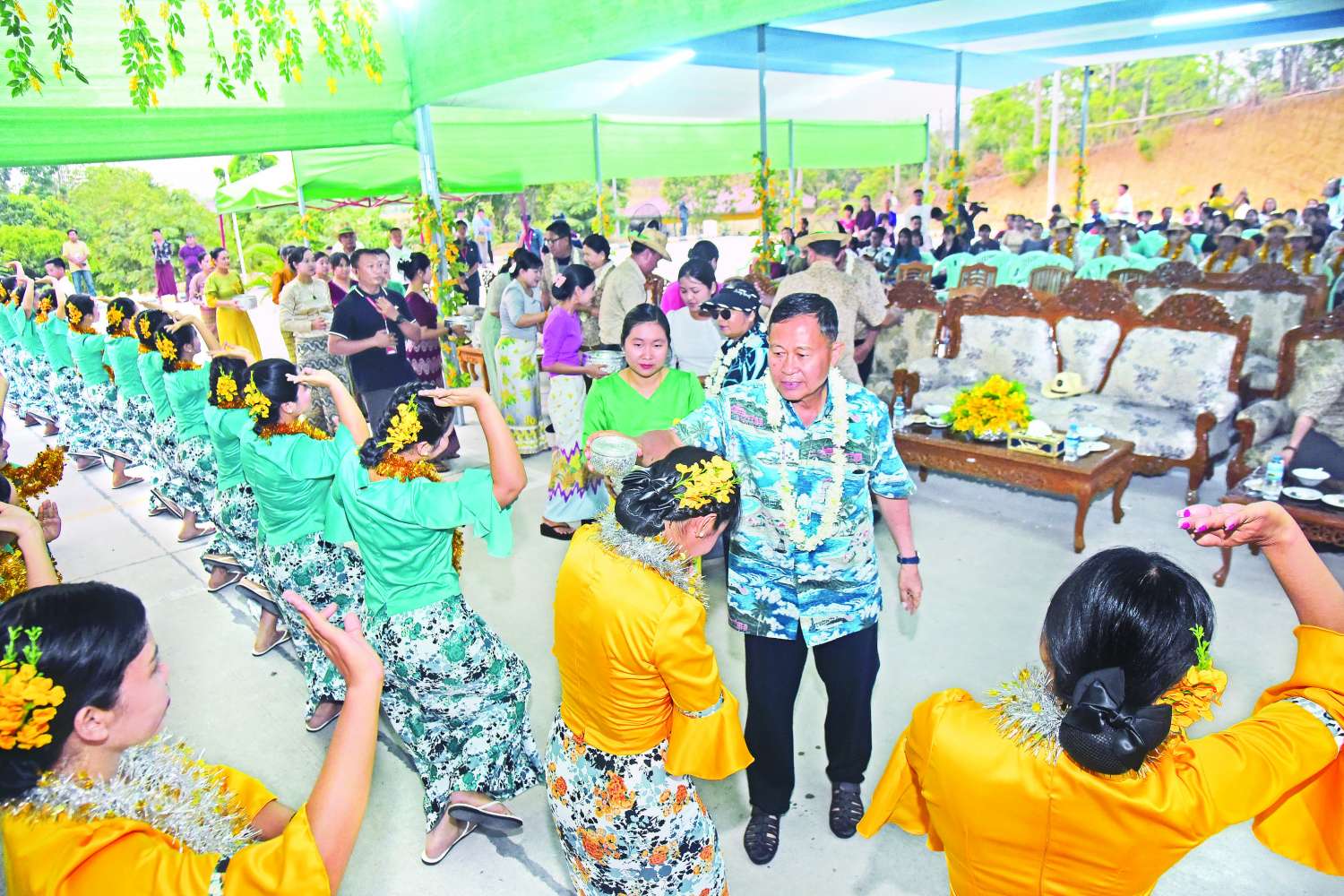 အဆိုပါ ပိတ်ပွဲအခမ်းအနားသို့ နိုင်ငံတော်စီမံအုပ်ချုပ်ရေးကောင်စီဒုတိယဥက္ကဋ္ဌ ဒုတိယဝန်ကြီးချုပ် ဒုတိယတပ်မတော်ကာကွယ်ရေးဦးစီးချုပ် ကာကွယ်ရေးဦးစီးချုပ်(ကြည်း)၏ ဇနီးဒေါ်သန်းသန်းနွယ်၊ ညှိနှိုင်းကွပ်ကဲရေးမှူး (ကြည်၊ ရေ၊ လေ) ဗိုလ်ချူပ်ကြီး မောင်မောင်အေးနှင့် ဇနီး၊ ပြည်ထောင်စုအဆင့်ပုဂ္ဂိုလ်များနှင့် ဇနီးများ၊ ကာကွယ်ရေးဦးစီးချုပ်ရုံးမှ တပ်မတော်အရာရှိကြီးများနှင့် ဇနီးများ၊ အရာရှိ၊ စစ်သည်၊ မိသားစုဝင်များနှင့် ယိမ်းအဖွဲ့များတက်ရောက်ကြပြီး ရေကစားမဏ္ဍပ်တွင် အနုပညာရှင်များ၊ တေးသံရှင်များနှင့် ယိမ်းအကအဖွဲ့များ၏ တေးသီချင်းများဖြင့် ကပြသီဆိုဖျော်ဖြေမှုများကို ကြည့်ရှုအားပေးကြပြီး အနုပညာရှင်များနှင့် ယိမ်းအကအဖွဲ့များအား ဂုဏ်ပြုဆုငွေများ ပေးအပ်ချီးမြှင့်ကြသည်။