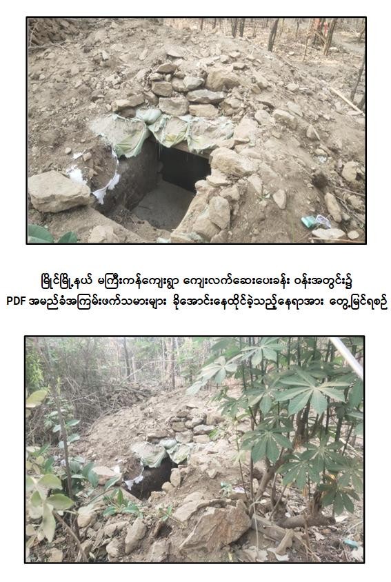PDF အမည်ခံ အကြမ်းဖက်သမားများသည် ပြည်သူလူထုနှင့် တပ်မတော်က လိုလားသော ထာဝရငြိမ်းချမ်းရေးကို မျက်ကွယ်ပြုကာ ၎င်းတို့၏ကိုယ်ကျိုးကို ရှေ့တန်းတင်လုပ်ဆောင်နေသော လက်နက်ကိုင်သောင်းကျန်းသူများ၏ အထောက်အပံ့များကိုရယူကာ လုံခြုံရေးတပ်ဖွဲ့ဝင်များနှင့် အလှမ်းကွာဝေးသော ဒေသများတွင် ဒေသခံလူထုအား အနိုင်ကျင့်ခြိမ်းခြောက်၍ ကျေးရွာဘုန်းကြီးကျောင်းများ၊ စာသင်ကျောင်းများ၊ ကျေးလက်ဆေးပေးခန်းနှင့် လူနေအိမ်များတွင် သဲအိတ်၊ ဘန်ကာများ ဆောက်လုပ်ခြင်း၊ ပစ်ကျင်းများတူးခြင်း၊ ပတ်ဝန်းကျင်တွင် လက်လုပ်မိုင်းအတားအဆီးများ ထောင်ထားခြင်းများ ပြုလုပ်လာခဲ့သည်။ ထို့အပြင် အကြမ်းဖက်လုပ်ရပ်များ လုပ်ဆောင်ရာ၌ ဘုရားကျောင်းကန်၊ ရဟန်းသံဃာနှင့်သီလရှင်များ အပေါ်တွင်လည်း ရက်စက်ယုတ်မာမှုများလုပ်ဆောင်လာခဲ့ပြီး ဗုဒ္ဓဘာသာဝင်တို့အထွက်အမြက်ထားရာ သင်္ကန်းကိုအသုံးချ၍ အကြမ်းဖက်မှုလုပ်ရပ်များကိုလည်း စက်စုပ်ရွံ့ရှာဖွယ် ပြုလုပ်လာကြောင်း တွေ့ရှိရသည်။ အဆိုပါအများနှင့်သက်ဆိုင်သော စစ်ဘက်နှင့်မသက်ဆိုင်သည့် အဆောက်အဦနေရာများကိုအသုံးချခြင်း၊ ပြည်သူများကို လူသားတံတိုင်းအဖြစ်အသုံးချခြင်းသည့် စစ်ရာဇဝတ်မှု (War Crime)ကို ကျုးလွန်ခြင်းဖြစ်ပြီး ၎င်းတို့၏ ယုတ်မာသောလုပ်ရပ်များနှင့်ပတ်သက်၍လည်း ၎င်းတို့အပေါ် ရွံမုန်းကြောက်ရွံ့နေသည့် ပြည်သူများအနေဖြင့် ရရှိသည့်အခွင့်အရေးအပေါ်မူတည်၍ သတင်းအချက်အလက်များကို လုံခြုံရေးတပ်ဖွဲ့များထံ အဆက်မပြတ်ပေးပို့လျက်ရှိသည်။