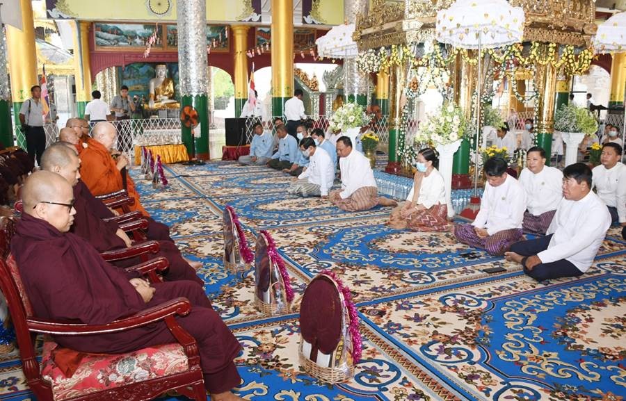 ထို့နောက် တိုင်းဒေသကြီးဝန်ကြီးချုပ်၊ တိုင်းမှူးနှင့် တက်ရောက်လာကြသူများက သံဃာတော်များအား လှူဖွယ်ဝတ္ထုပစ္စည်းများ ဆက်ကပ်လှူဒါန်း၍ လှရတနာ ဆရာတော်ထံမှ လှူဒါန်းမှုအစုစုတို့အတွက် အနုမောဒနာတရားနာယူကြပြီး ရေစက်သွန်းချအမျှပေးဝေခဲ့ကြကြောင်း သတင်းရရှိသည်။