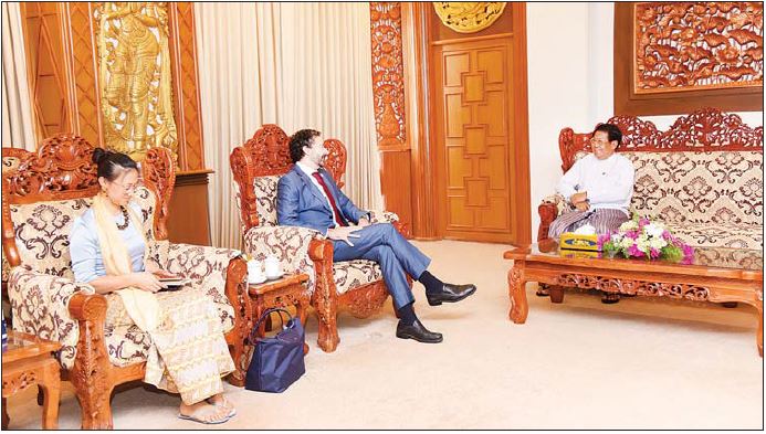 တွေ့ဆုံစဉ် IFRC ၏ အာရှပစိဖိတ်ဒေသဆိုင်ရာ ညွှန်ကြားရေးမှူးက IFRC ၏ လုပ်ငန်း သဘောသဘာဝ၊ မြန်မာနိုင်ငံကြက်ခြေနီအသင်း (MRCS) က ဆောင်ရွက်နေသည့် လုပ်ငန်းများ ပိုမိုအားကောင်းလာစေရေး ကူညီပံ့ပိုးပေးနေမှုကို ဆွေးနွေးပြောကြားသည်။ ပြည်ထောင်စုဝန်ကြီးက ကျန်းမာရေး၊ သန့်ရှင်းရေး၊ အသိပညာပေးရေးကဏ္ဍများတွင် နည်းပညာအကူအညီများ ပေးအပ်ရေးနှင့် ပတ်သက်၍ ပြန်လည်ဆွေးနွေး ပြောကြားသည်။