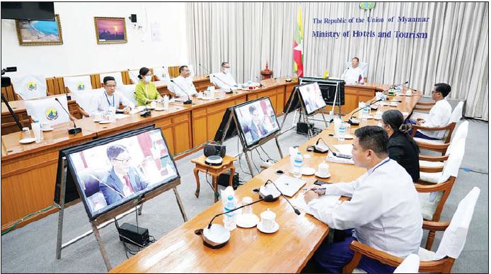 ကိုဗစ်-၁၉ မတိုင်မီ ၂၀၁၉ ခုနှစ်အတွင်း မြန်မာနိုင်ငံသို့ ခရီးသွားဧည့်သည် ၄ ဒသမ ၃၆ သန်း ဝင်ရောက်ခဲ့ရာတွင် ရုရှားခရီးသွားဧည့်သည် အများအပြား လာရောက်လည်ပတ်ခဲ့သည့် သာဓကများရှိခဲ့ပါကြောင်း၊ ရုရှားခရီးသွားဧည့်သည်များ ပိုမိုလာရောက်လည်ပတ်နိုင်ရေးအတွက် သက်ဆိုင်ရာ အစိုးရအဖွဲ့အစည်းများ၊ နှစ်နိုင်ငံသံရုံးများ၊ ပုဂ္ဂလိကကဏ္ဍအသင်းအဖွဲ့များ၏ အားပေးကူညီမှုများဖြင့် ပူးပေါင်းဆောင်ရွက်လျက်ရှိပါကြောင်း၊ နှစ်နိုင်ငံအကြား ခရီးသွား ဧည့်သည်များ လွယ်ကူအဆင်ပြေစွာ အပြန်အလှန်သွားလာလည်ပတ်နိုင်ရေး၊ စီးပွားရေးအခွင့် အလမ်းများ ပိုမိုရရှိလာရေးနှင့် နှစ်နိုင်ငံ ပြည်သူများအချင်းချင်း ကူးလူးယှက်နွယ်မှု တိုးမြှင့်ရေး ပိုမိုပူးပေါင်း ဆောင်ရွက်လိုပါကြောင်း၊ ဝန်ကြီးဌာနအနေဖြင့် ခရီးသွားမြှင့်တင်ရေးဆိုင်ရာ ကိစ္စရပ်များ ဆောင်ရွက်လျက်ရှိရာ ရုရှားနိုင်ငံမှ ခရီးသွားလုပ်ငန်းဆောင်ရွက်သူများ၊ မီဒီယာများနှင့် ကျော်ကြားသူများအား ချစ်ကြည်ရေးအလည်အပတ်ခရီးစဉ်များ ဖိတ်ခေါ်ဆောင်ရွက်လိုပါကြောင်း၊ ယနေ့ကျင်းပသည့် ခရီးသွားလုပ်ငန်းဖိုရမ်မှတစ်ဆင့် နှစ်နိုင်ငံအကြား ချစ်ကြည်ရင်းနှီးမှုနှင့် အစိုးရနှင့် ပုဂ္ဂလိကများအကြား ပိုမိုပူးပေါင်းဆောင်ရွက်နိုင်မည်ဟု ယုံကြည်ပါကြောင်း၊ ရုရှား ခရီးသွား ဧည့်သည်များအား မြန်မာနိုင်ငံသို့ လာရောက်လည်ပတ်ရေးအတွက် ဖိတ်ခေါ်လိုပါကြောင်း ပြောကြားသည်။