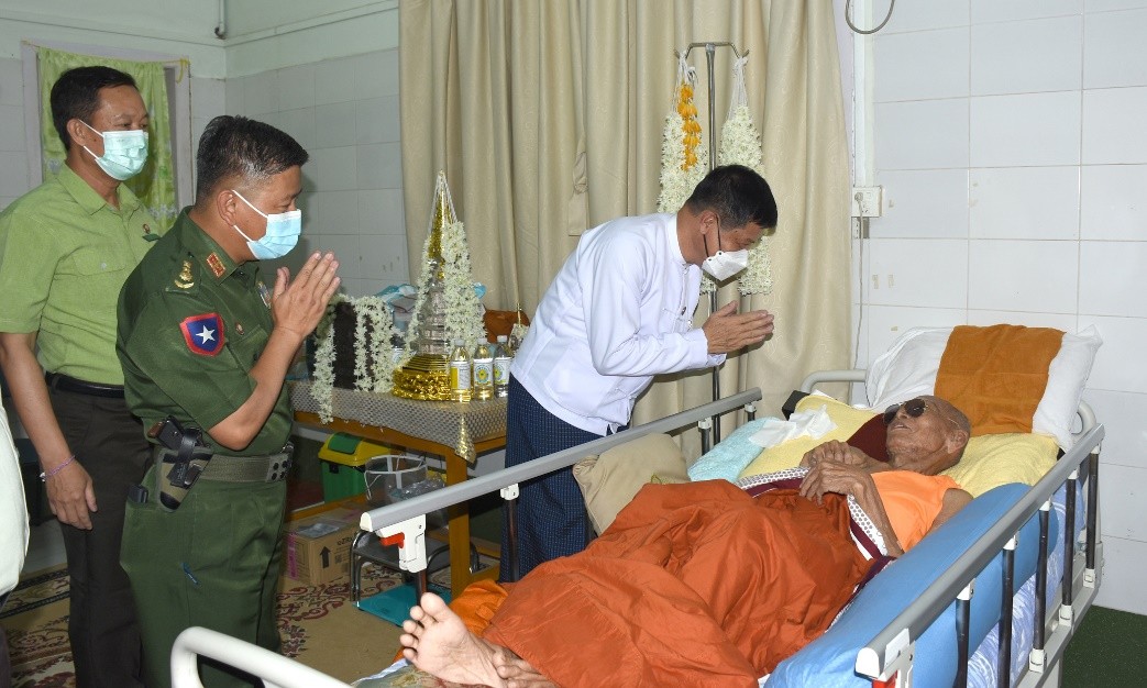 မန္တလေးအထွေထွေရောဂါကုဆေးရုံကြီးရှိ မန်းတောင်ရိပ် အထွေထွေရောဂါကုသဆောင်တွင် ကျန်းမာရေးစောင့်ရှောက်မှုများ ခံယူသီတင်းသုံးတော်မူနေသည့် နိုင်ငံတော်သံဃမဟာနာယကအဖွဲ့ဥက္ကဋ္ဌ ဒေါက်တာဘဒ္ဒန္တကုမာရာဘိဝံသ ဗန်းမော်ကျောင်းတိုက် ဆရာတော်ကြီး၏ ကျန်းမာရေး တိုးတက်ကောင်းမွန်နေမှုအခြေအနေအား လုံခြုံရေးနှင့်နယ်စပ်ရေးရာဝန်ကြီး မန္တလေးတိုင်းဒေသကြီးအစိုးရအဖွဲ့ ဝန်ကြီးချုပ်ဦးမျိုးအောင်၊ ဗိုလ်မှူးကြီးကျော်ကျော်မင်း၊ တိုင်းဒေသကြီးအစိုးရအဖွဲ့ အတွင်းရေးမှူးနှင့် တာဝန်ရှိသူက ယနေ့နံနက်ပိုင်းက သွားရောက်ဖူးမြော်ကြည့်ရှုခဲ့ကြသည်။