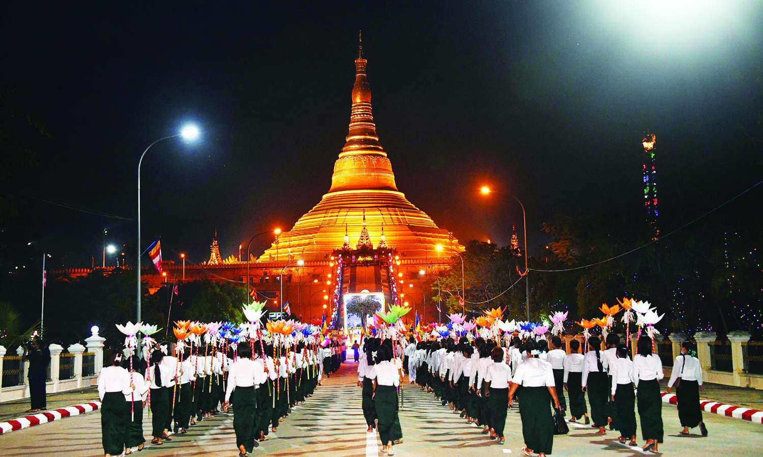 ကဆုန်လပြည့် ဗုဒ္ဓနေ့အထိမ်းအမှတ် ဆီမီးတိုင်များကိုင်ဆောင်၍ လှည့်လည်ပူဇော်ပွဲအခမ်းအနားကို ယနေ့ ညနေပိုင်းတွင် နေပြည်တော် ဥပ္ပါတသန္တိစေတီတော်မြတ်ကြီး၏ ရင်ပြင်တော်၌ ကျင်းပသည်။