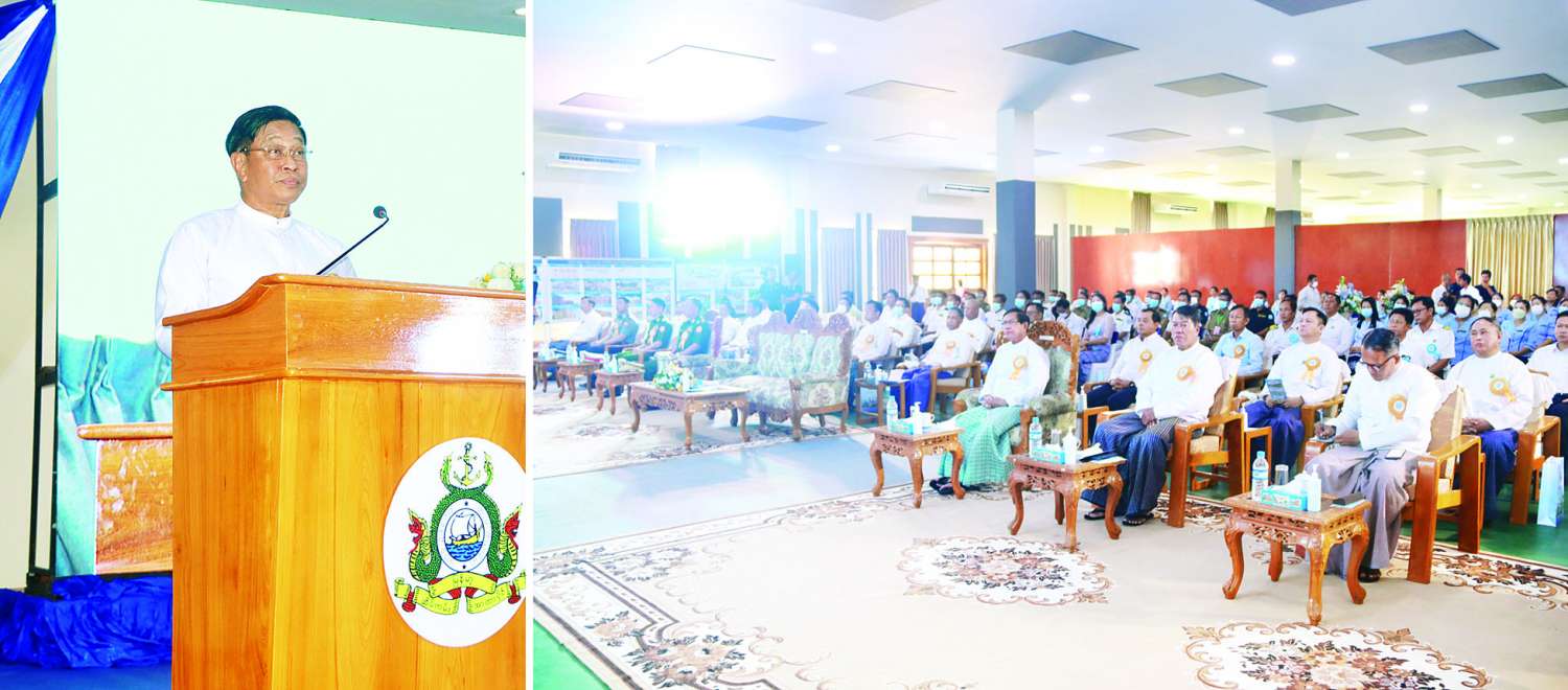 ထို့နောက် ဒုတိယဝန်ကြီးချုပ်နှင့် ပြည်ထောင်စုဝန်ကြီးက နိုင်ငံတော်နှင့် မိခင်ဌာနအနေဖြင့် ဝန်ထမ်းများ၏ နေထိုင်မှုအဆင်ပြေစေရေး၊ သက်သာချောင်ချိရေး၊ သွားလာမှုအဆင်ပြေစေရေး၊ ဝန်ထမ်းမိသားစုများအားလုံး တစ်စုတစ်စည်းတည်း စုပေါင်းနေထိုင်နိုင်စေရေးတို့အတွက် ရည်ရွယ်ချက်ကောင်း၊ စေတနာကောင်းများဖြင့် ဤသို့သော အဆင့်မြင့်အိမ်ရာများ စီစဉ်ဆောင် ရွက်ထားမှုအတွက် ဝန်ထမ်းများကလည်း မိခင်ဌာနအပေါ်တွင် ဂုဏ်ယူ၊ သစ္စာရှိ၊ သံယောဇဉ်ထား ကြပြီး ပေးအပ်သည့်တာဝန်ဝတ္တရားများကို အားသွန်ခွန်စိုက် စေတနာပြည့်ဝစွာဖြင့် ထမ်း ဆောင်သွားကြရန်ဖြစ်ကြောင်း၊ နိုင်ငံ့ဝန်ထမ်းသစ္စာအဓိဋ္ဌာန်(၆)ချက်၊ နိုင်ငံ့ဝန်ထမ်းကျင့်ဝတ် အပါး (၃၀) စသည့် နိုင်ငံ့ဝန်ထမ်း စည်းမျဉ်းစည်းကမ်းများနှင့်အညီ လိုက်နာကျင့်ကြံသွားကြရန်ဖြစ် ကြောင်း၊ နိုင်ငံတော်၏ဘဏ္ဍာငွေ မြောက်မြားစွာ ကုန်ကျခံတည်ဆောက်စီစဉ်ပေးထားခြင်း ဖြစ်သောကြောင့် ဤဝန်ထမ်းအိမ်ရာတစ်ခုလုံးနှင့် ပတ်ဝန်းကျင်ကို ရေရှည်တည်တံ့အောင်၊ အစဉ် အမြဲ သန့်ရှင်းသာယာလှပနေအောင် အားလုံးက တက်ညီလက်ညီဖြင့် ထိန်းသိမ်းစောင့်ရှောက် သွားကြရန်ဖြစ်ကြောင်း တိုက်တွန်းမှာကြားသည်။ ထို့နောက် မြန်မာ့ဆိပ်ကမ်းအာဏာပိုင် ဦးဆောင်ညွှန်ကြားရေးမှူးက စက်ဆန်းမိသားစု ဝန်ထမ်းအိမ်ရာ၊ ဘက်စုံသုံးသီရိအဏ္ဏဝါခန်းမတို့နှင့် စပ်လျဉ်းသည့် အချက်အလက်များအား ရှင်းလင်းတင်ပြပြီး တည်ဆောက်ရေးမှတ်တမ်းတင် Video Clip ပြသသည်။