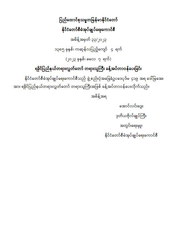 ဝန်ကြီးဌာန ကြေညာချက်များ