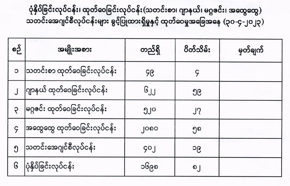 ပုံနှိပ်ခြင်းလုပ်ငန်း၊ ထုတ်ဝေခြင်းလုပ်ငန်း (သတင်းစာ၊ ဂျာနယ်၊ မဂ္ဂဇင်း၊ အထွေထွေ) သတင်းအေဂျင်စီလုပ်ငန်းများ ခွင့်ပြုထားရှိမှုနှင့် ထုတ်ဝေမှုအခြေအနေ(၃၀-၄-၂၀၂၃) 05/08/2023